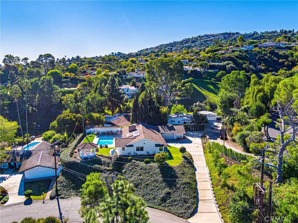 Welcome to 2636 Sunnyside Ridge Road, a serene single-level retreat nestled on a quiet cul-de-sac in Rancho Palos Verdes. Privately set behind a long driveway, this fully remodeled home showcases breathtaking harbor, ocean, mountain, and city views from nearly every roomstretching from downtown Los Angeles to Dana Point. Set on nearly half an acre, the property delivers true indooroutdoor living with a large flat backyard and expansive spaces for dining and entertaining. A sparkling pool, firepit lounge, mature rose garden, fruit trees, and a complete outdoor kitchen with built-in BBQ create a resort-like setting designed to maximize the homes exceptional views. Inside, the layout includes four bedrooms, three fully remodeled bathrooms plus an office. Double 16-foot sliding glass doors frame stunning sunrises and evening harbor lights, while panoramic views carry through the primary suite, kitchen, dining, family, and living rooms. Vaulted and open-beamed ceilings, along with two brick fireplaces, add warmth and architectural charm. The home has been extensively redesigned with high-end finishes throughout. The gourmet kitchen features new cabinetry, Taj Mahal quartzite counters, Viking appliances, a large island, and a butlers pantry with laundry area. Additional upgrades include all new windows and doors, solid oak hardwood floors, custom millwork, full interior and exterior repainting, an oversized two-car garage (can easily be three cars), solar power, a new HVAC system, and upgraded electrical panel, wiring and lighting. Conveniently located near top-rated Palos Verdes