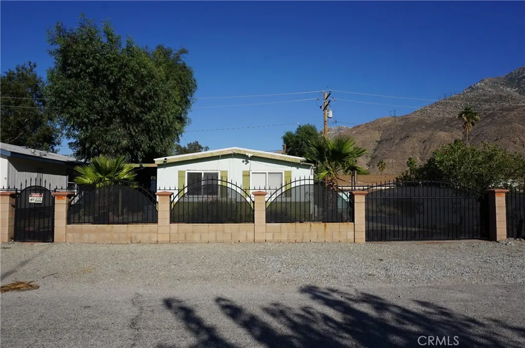 Location, Location, Location, & Opportunity. You may have found a hidden gem in Southern California with potential for the person who may want to be off the grid without being off the grid!? If you are interested in a desert environment, however, you still want to be on a paved street, with utilities, and want to be away from the city, without being too far from civilization, with shopping and restaurants as close as 4 miles or so away. This area is not for everyone. If you don't mind the desert winds that power the local wind generators, the undeveloped land, just a few hundred feet from the front door of this waiting-to-be-rehabbed manufactured two-bedroom, two-bath home, offers lots of potential. The fenced & gated 8,712 ft lot is street to street, with gates at both streets. A toy trailer or RV can be pulled onto the fenced lot. On the property sits a detached wooden storage shed, the home has a covered patio, & a paved driveway with a rolling gate for off-street vehicle parking. The cooling is supplied by a Mini Split, Evaporative cooler, and window AC units. Ask your favorite Realtor to make an appointment so you may visit this property. If you are not familiar with Cabazon, here are some distance estimations. Please double-check for yourself: This property is about 100 Miles East of Los Angeles, about 25 miles West of Palm Springs, about 3 miles South of the Morongo Casino, A few miles South/East of the Cabazon outlets, about 15 miles East of the Walmart in Beaumont.