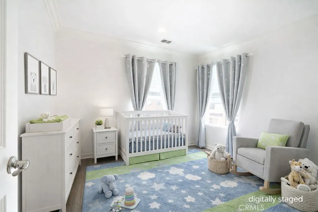 Tri-level townhome in San Marcos featuring PAID solar, central heating and air conditioning, whole house fan, and an EV-ready 2-car attached garage with overhead and standing storage racks. The second-floor main living area offers an open layout with a full kitchen, center island, quartz countertops, and included appliances: refrigerator, range, microwave, dishwasher, washer, and dryer. Additional features include a spacious living area, half bathroom, storage closet, and access to a private balcony. The third floor includes all three bedrooms, a laundry area, and additional storage. Two bedrooms feature mirrored closet doors, and the primary suite offers a walk-in closet. Interior upgrades include hardwood flooring, crown molding, recessed lighting, new carpet on stairs, and an alkaline water system under the kitchen sink. Electrical outlets with built-in USB ports are installed in the kitchen, living area, and bedrooms. Community amenities include BBQ and picnic areas and a playground. Conveniently located near shopping, dining, freeway access, and Kaiser medical facilities.