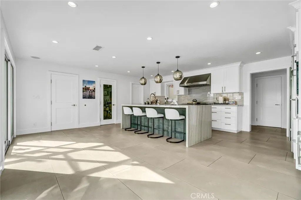 Welcome to an extraordinary waterfront residence featuring an approximate 90 ft private dock, tucked away at the end of a quiet cul-de-sac on Humboldt Island, one of the most desired and prestigious locations in Huntington Harbour. This turnkey 4,648 SqFt, 4-bed, 4-bath home blends modern luxury with timeless coastal design, offering two primary suites and unobstructed full-harbour views. Its exceptional features includes Australian ProFenders, enhanced lighting, and a new 50-amp electrical system. Outdoor living shines with a new above-ground spa, a spacious partially enclosed California room with one large and open steel framed sliding door, an expansive patio, gas powered fire place, built-in barbecue with mini-fridge, herb garden, upgraded hardscape, and 2 water fountains. Inside, high-end chandeliers, porcelain flooring, integrated ceiling speakers, and a striking stone fireplace elevate the main level. Sliding glass doors create seamless indoor outdoor flow. A floating glass staircase leads upstairs, where luxury vinyl flooring extends throughout. The chefs kitchen includes solid wood cabinets imported from the Pacific Northwest, Sub-Zero refrigeration, a Thermador six-burner range, microwave with warming feature, quartzite counters, bar sink, walk-in pantry, and wine closet. Large sliding glass doors invite natural light into the space, creating an inviting atmosphere for cooking and gathering. A separate office adds flexibility. Both primary suites offer breathtaking harbour views. One features two upgraded walk-in closets, including a glass shoe display, dual sinks