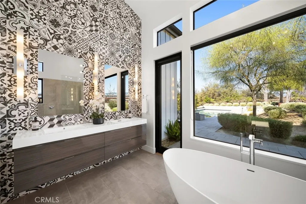 An exceptional luxury retreat within the exclusive gated community of Jespersen Ranch, this modern farmhouse estate sits in a private enclave of just five premier homes in San Luis Obispo. Positioned on over one acre of resort-style grounds with panoramic views of rolling hills, vineyards, and mountains, the property offers unmatched serenity while remaining only minutes from the vibrant heart of downtown SLO. Inside, the home showcases an open, light-filled floor plan with soaring cathedral ceilings, light-washed hardwood floors, and expansive picture windows that frame the surrounding natural beauty. The main-level primary suite serves as a tranquil sanctuary with dual walk-in closets, a spa-inspired bath featuring a soaking tub and large walk-in shower, a two-way fireplace, and private patio access. Three additional ensuite bedrooms on the main level, one with own entrance from exterior, ensure comfort and privacy for family and friends alike. At the center of the home, the chefs kitchen makes a statement with a massive island, Wolf range, built-in refrigerator, two dishwashers, a butlers pantry, coffee station, and a formal bar complete with dual wine refrigerators.Everyday living is made effortless with a spacious mud/laundry room and an oversized three-car garage equipped with extensive cabinetry. While additional features like a main floor library office, an upstairs game room with spectacular views, and accessory building with workout studio add to the lifestyle. Completing the property is a fully detached, 601 sq ft guest houseperfect for extended stays, visiting g