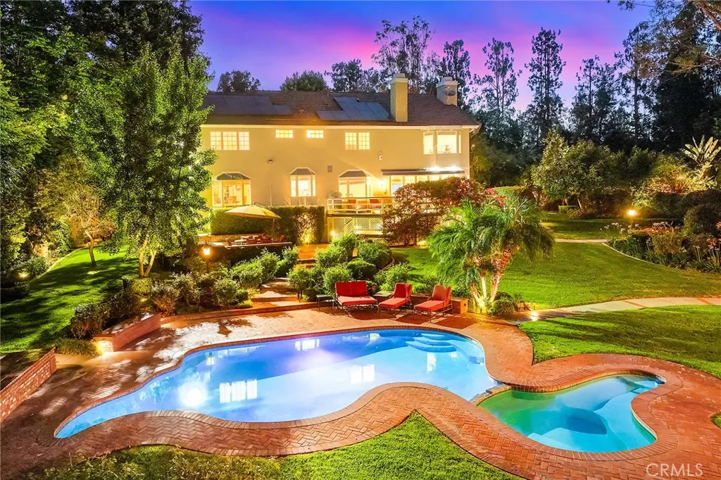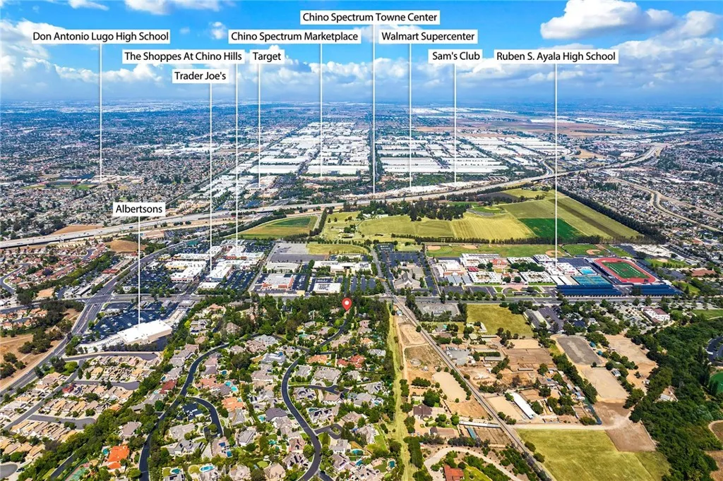 Luxury Living in Chino Hills Most Prestigious Gated Community Payne Ranch Estate! This exquisite custom home with 4 bedrooms, 4 bathrooms (1 bedroom, 1 bathroom downstairs), 3-car garage. Stunning curb appeal. Expansive living spaces and upscale living interior designs. Front doors with stained glass panels. Grand and elegant entry with soaring ceiling and custom chandelier. The living room with wood flooring, coffered ceilings, fireplace. Gourmet kitchen with marble counter tops, center island, high-end stainless-steel appliances, including Subzero built-in refrigerator, built-in microwave, and Thermador 6-buner professional range with griddle. Family room with fireplace and also with coffered ceilings. The downstairs guest room with full bathroom. The primary suite offers a true retreat with fireplace, walk-in closet, and a spa-like bathroom, soaking tub, large shower room with frameless glass enclosures. Three additional bedrooms provide flexibility for family or guests, while every finish throughout reflects refined taste. Other features include, custom two-tone paint, recessed lights, crown moldings, travertine flooring in entry, kitchen and bathrooms, custom window coverings, and 20 solar panels PAID OFF. The exterior is equally breathtakingresort-style landscape lighting, mature trees, and a private, peaceful yard ideal for relaxing or entertaining. The huge lot of 34,500 SqFt with swimming pool, spa, BBQ island, patio, and winding paths, a perfect entertainment paradise. ADU of 1199 SqFt. is ready to build! Located in the most desirable gated community of Chino Hil