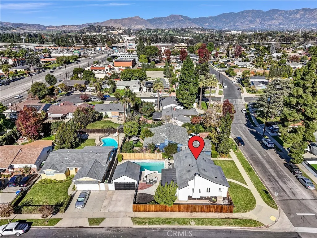 MAJOR PRICE REDUCTION - Welcome to 10505 Halbrent Ave, an exquisitely reimagined, turnkey modern ranch-style home located in the heart of Mission Hills. This 3-bedroom, 2-bath, 1,748 sq ft residence sits proudly on a large corner lot and features a stunning swimming pool, a spacious detached garage, and an open, airy floor plan ideal for todays lifestyle. Step inside to a fully renovated interior where every surface has been thoughtfully redesigned. The expansive living room is filled with natural light and flows seamlessly into the dining area and the brand-new chefs kitchen. The kitchen showcases all-new custom cabinetry, quartz countertops, designer backsplash, stainless steel appliances, and an oversized peninsula perfect for entertaining. The private primary suite features a walk-in closet and a beautifully updated en-suite bath with a luxury shower, modern finishes, and a contemporary navy double-vanity. Two additional spacious bedrooms share a second fully remodeled bathroom with premium fixtures and tilework. A dedicated in-home laundry area adds convenience and function. Outside, enjoy a backyard built for relaxation and gatherings: a sparkling in-ground pool, multiple lounging areas, fresh hardscape, and new fencing that provides privacy and a clean, modern aesthetic. The detached garage offers secure parking, storage, or potential ADU possibilities (buyer to verify). The large lot and corner frontage add curb appeal and expand future potential. Located minutes from shops, restaurants, prime schools, the 405/118 freeways, and local parks, this home offers the perf