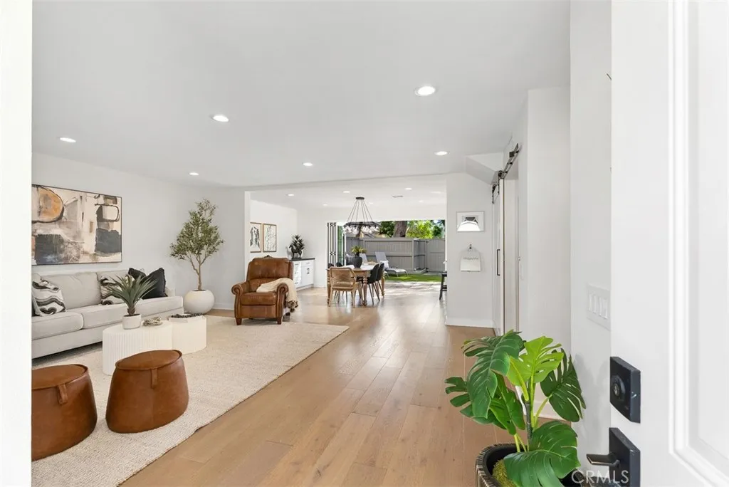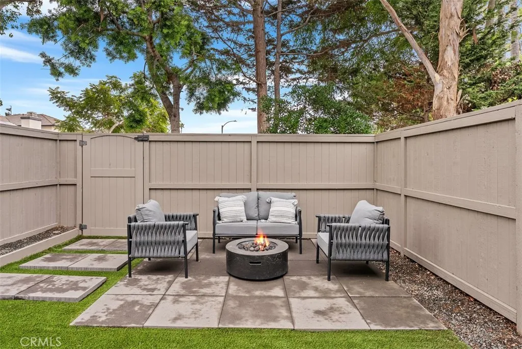 Stunningly updated Plan "C" model showcasing a full 2021 down-to-the-studs renovation plus premium upgrades added since. Remodel included a new HVAC/ducting, upgraded windows, recessed lighting, soft-close cabinetry, designer fixtures, full home automation, and a reconfigured downstairs bath with added walk-in shower. Hardwood flooring and a quartz-topped built-in buffet with dual refrigeration elevates the open, light-filled main level. Recent enhancements include new carpet, custom roller shades, an epoxy garage floor, a Noritz tankless water heater, and a quartz-topped entertainment cabinet framing the newly centered, modern tiled electric fireplace. The chefs kitchen offers marbled quartz counters, GE Caf appliances, a breakfast bar, and a walk-in pantry with bonus lighted storage. The adjacent 12 accordion glass door opens to one of Beachwalks most private and premier backyard locations, creating a refined indoor/outdoor living experience while vaulted ceilings bring light, height, and modern comfort throughout the upstairs. The primary suite features a walk-in closet, dual vanities, and a large walk-in shower. Additional highlights include a gated front patio with room-addition potential for a main level bedroom, overhead garage storage with a utility sink and laundry hookups, and ADU possibilities. Ideally located near one of the communitys four satellite pools and set on a quiet cul-de-sac with ample guest parking. Beachwalk amenities include a Jr. Olympic saltwater pool, spas, saunas, sand volleyball courts, lush greenbelts, and renovated clubhouses. HOA covers roo