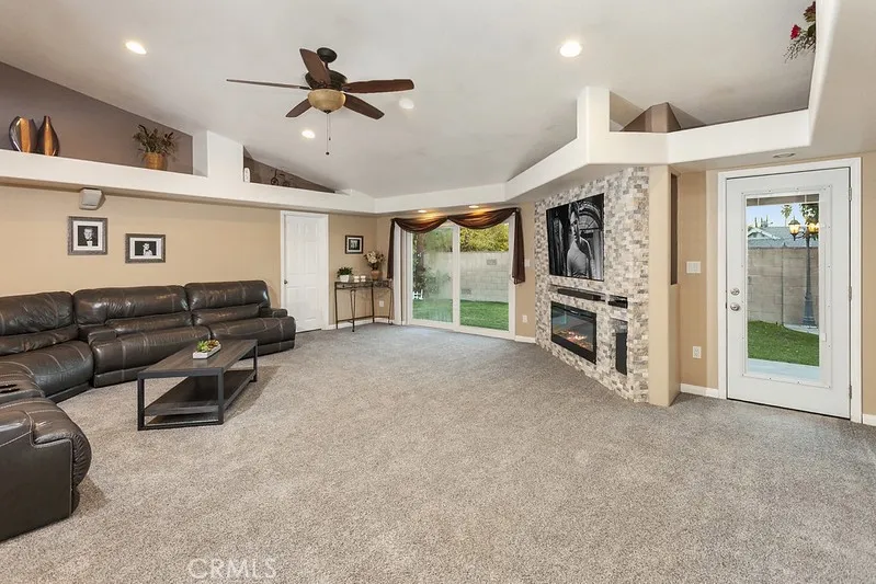 Experience luxury and comfort in this stunning updated West Hills home, tucked on a quiet cul-de-sac in one of the areas most sought-after neighborhoods. The lush front lawn, vibrant flower beds, mature Queen palms, lemon tree, and covered entry create exceptional curb appeal. Inside, the bright open-concept floor plan spans approximately 1,698 sq. ft., featuring smooth ceilings and a designer paint scheme throughout. The expansive living room features beamed ceilings, recessed lighting, backlit soffits, a lighted ceiling fan, newer carpet, and a striking floor-to-ceiling mosaic stone wall with electric fireplace. Sliding glass doors lead to the backyard, creating a seamless indoor-outdoor flow. The remodeled chefs kitchen offers rich wood-grained oak cabinetry, granite countertops, a pantry, dual-basin sink, granite breakfast bar, laminate floors, and premium stainless-steel appliances including a Whirlpool oven, Jenn-Air 5-burner gas cooktop, Maytag dishwasher, KitchenAid refrigerator, microwave, and Kenmore trash compactor. The adjoining dining room features beamed ceilings, a large window, and matching flooringperfect for family meals or entertaining. The home offers four bedrooms* and two bathrooms. The primary suite boasts new wood laminate flooring, mirrored wardrobe doors with organizers, and a spa-inspired en suite bath with dual-basin marble vanity, glass-enclosed double shower with two sets of controls, jetted soaking tub for two, and marble floors. Two additional bedrooms feature lighted ceiling fans, full-height mirrored closets, and wood laminate floors. The h