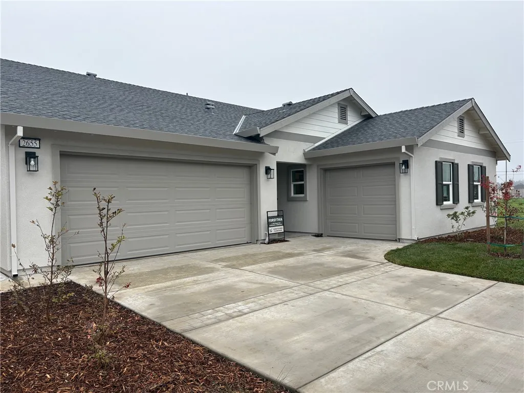 This thoughtfully designed 1,990 sq. ft. single-story home has 4 bedrooms and 3 full bathrooms and 3 car garage. An open-concept layout connects the spacious family room, dining area, and contemporary kitchen, which showcases beautiful granite countertops, a stainless steel appliance package, and convenient USB ports. Throughout this completed home you'll find designer upgrades mixed with energy efficiencies such as; LED lighting, dual-glazed vinyl windows, and an energy-efficient electric water heater to support long-term savings, the home is prepped for an electric vehicle charging station and equipped with a Wi-Fi-capable garage door opener for added convenience. Automatic humidity-sensing fans, smoke and carbon monoxide detectors, and vacancy sensor lighting enhance daily comfort and peace of mind. A built in covered patio that connects the living room and primary bedroom allows you to enjoy a fully fenced backyard! Another amazing feature is the two-car and separate one-car garage both with house access. This new construction home offers exceptional function, style, and value. Surrounded by scenic landscapes and winding trails, Orchard Creek invites you to live where nature and lifestyle come together. Just minutes away, you'll enjoy easy access to the best of Chico, including Bidwell Park, downtown dining and shopping, top-rated schools, Enloe Medical Center, and California State University, Chico. Daily essentials are close at hand, with nearby grocery stores, fitness centers, and local farmers markets.