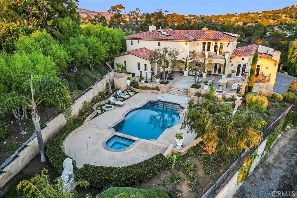 Set at the top of Mohler Loop in Anaheim Hills and just minutes from major shopping and dining, this beautiful Mediterranean home sits behind private gates and showcases sweeping canyon and hillside views. Soaring ceilings, abundant windows, and effortless indooroutdoor flow create an inviting environment for both everyday living and elevated entertaining. Outdoors, youll find a relaxing fire pit lounge, a built-in BBQ area, charming patios with soothing fountains, and a sparkling saltwater poolyour own resort-style retreat. 4-car garage and plenty of gated driveway space for additional parking (totaling additional 1,038 SqFt) and additional bonus room basement room of 768 SqFt. For a total of 6,390 Sqft. Basement is fully built with travertine flooring, full sauna-spa bathroom, with standing shower and his & hers vanity. Perfect for a gymnasium, extra bedroom or theatre/wine room. Inside, the living room, kitchen and game room one can capture stunning city-light views. The main level offers a spacious chefs kitchen equipped with Viking and Sub-Zero appliances, two private guest suites, a formal dining room, an elegant living room, and a grand staircase. Upstairs, the primary suite enjoys dramatic sunsets and hillside vistas, a luxurious bath, fireplace, and private balcony and two additional en-suite bedrooms and a flexible bonus roomideal for a wellness studio, office, or craft spaceprovide plenty of versatility. With gated privacy, incredible views, seamless indoor-outdoor living, and exceptional flow, this home is designed for comfort, style, and effortless entertaining