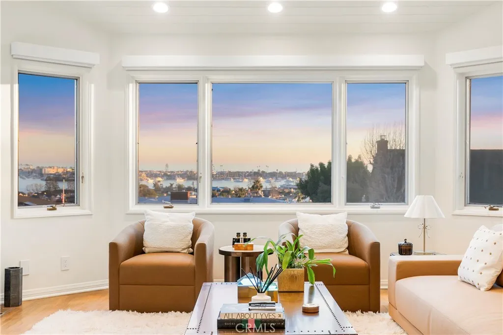 Classic Newport Beach coastal chic, designed by acclaimed Newport Beach architect Brion Jeannette, blending timeless elegance with refined sophistication. Thoughtfully curated with warm architectural details throughout. The main level offers three spacious bedrooms, two newly remodeled bathrooms, and a versatile bonus room ideal for an office, media room, or playroom. An elegant winding staircase leads to the upper level where the main living spaces and primary suite await. The chefs kitchen features granite countertops, designer backsplash, and a premium appliance suite. Living and dining areas showcase fireplaces, open-beamed ceilings, and breathtaking harbor and ocean views. The primary suite is a private retreat with water views, his and hers closets, spa-inspired bath with heated floors , and access to a serene deck ideal for enjoying sunset evenings. The backyard is a classic and elegant entertainers sanctuary, offering one of the largest usable private yards on Kings Road. A sparkling, refreshed pool and spa are complemented by a spacious covered loggia, creating an inviting setting for year-round entertaining, alfresco dining, and relaxed coastal living.Additional highlights include an elevator, dumbwaiter, wine storage, oversized laundry and pantry, central vacuum, and an oversized two-car attached garage. Ideally located in the "Cliff Haven" neighborhood near Fashion Island, the harbor, beaches, dining, bike trails, parks, and recreationthis is Newport living at its finest.