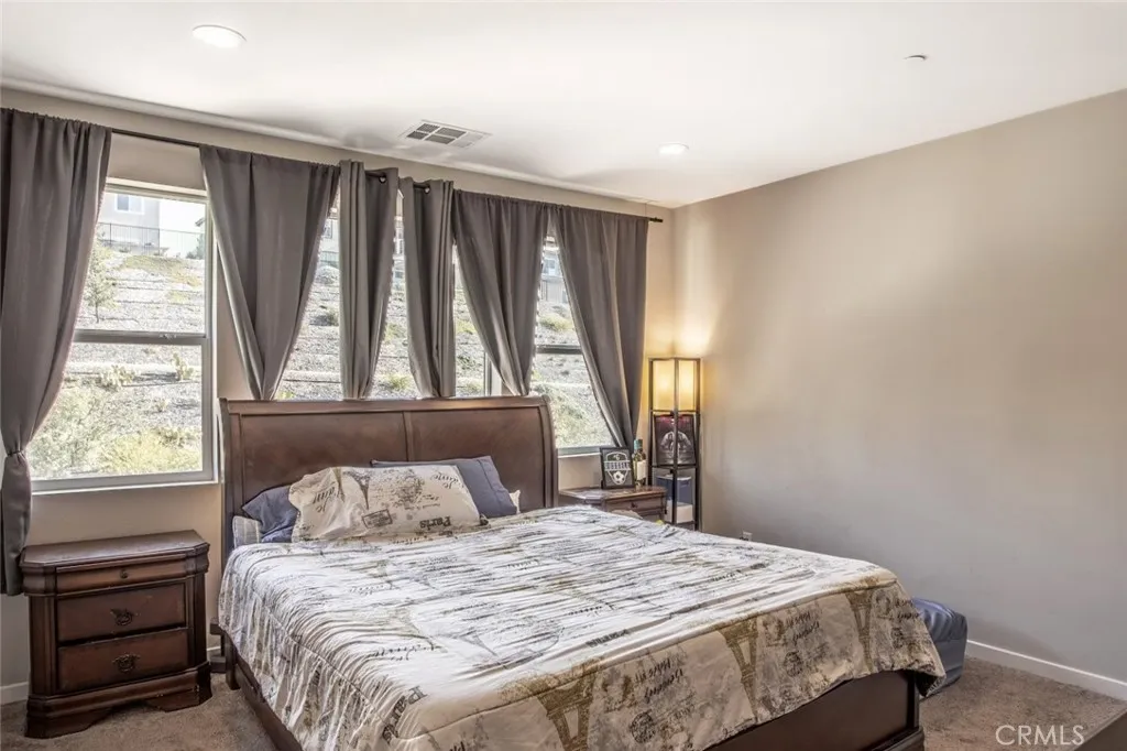 Beautifully maintained two story home in a desirable Santa Clarita neighborhood offering approximately 2,932 square feet on a 6,223 square foot lot. The home features 4 bedrooms, a bonus room that may serve as an additional bedroom, and 3 bathrooms. There are two primary bedrooms with attached bathrooms, one located downstairs and one upstairs, providing flexibility for multigenerational living or guests. The open floor plan is filled with natural light and showcases wide plank flooring, spacious living and dining areas, and a well appointed kitchen with modern cabinetry, generous counter space, a large center island, and stainless steel appliances. Living areas connect comfortably to the backyard for indoor outdoor enjoyment. The private backyard includes a covered patio and landscaped lawn. A two car attached garage provides parking and storage. Skyline community amenities include a pool, spa and hot tub, fire pit, barbecue area, sport court, tennis court, biking and hiking trails, guest house, pool house, clubhouse, recreation room, and maintained grounds. Conveniently located near parks, schools, shopping, dining, and major access routes.