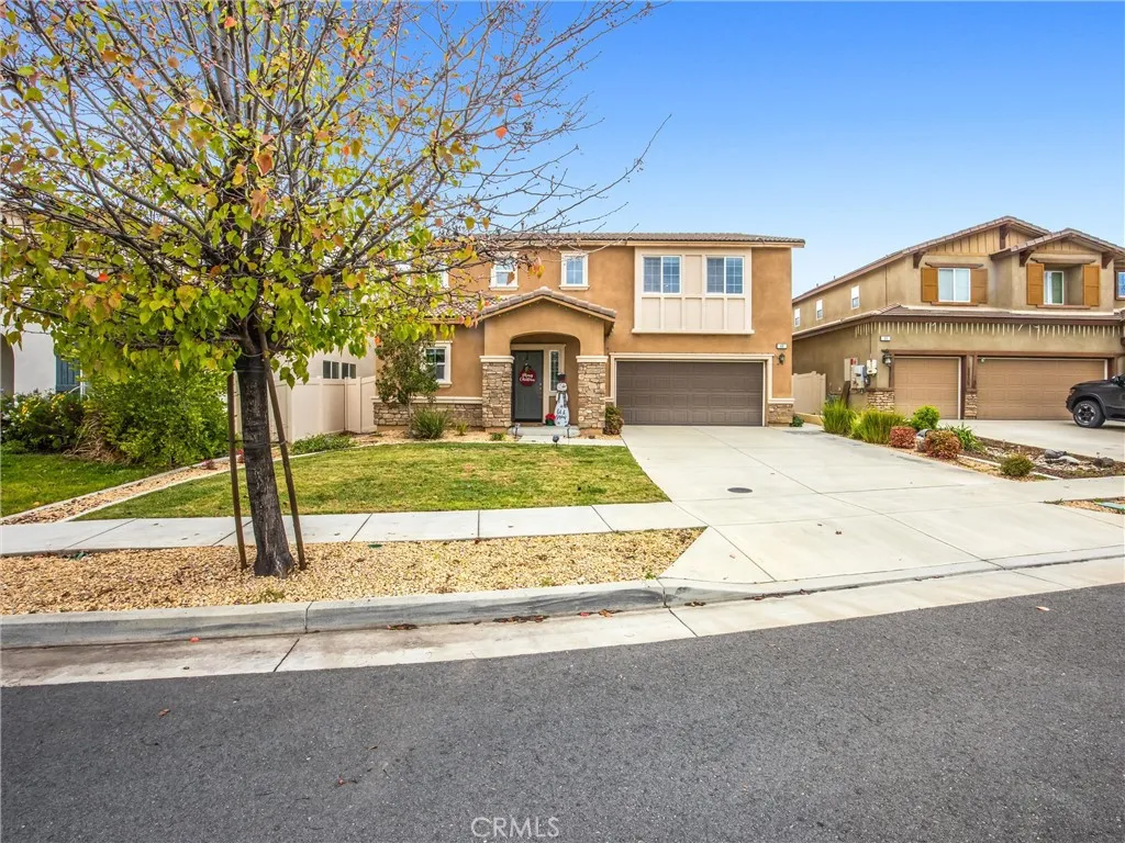 Immaculate and move-in ready, beautifully upgraded JP Ranch home delivers the indoor-outdoor lifestyle buyers loveplus a view that truly steals the show. (Check out all the pictures of the fun HOA amenities.) From the back patio, kitchen, great room, and upstairs primary suite, enjoy sweeping, relaxing mountain vistas, including breathtaking views of Mt. San Gorgonio. With no rear neighbors, your sceneryand your privacyare protected. This home is also within a secure gated community. Inside, the open-concept layout keeps everyone connected. The chefs kitchen flows seamlessly into the great room and features quartz countertops, abundant cabinetry, a separate pantry, and a seller-added designer backsplash with updated lighting. The oversized islandexpanded to double the original builder sizecreates the perfect hub for entertaining, homework, or game night, while a spacious breakfast nook and large dining area make hosting easy. Elegant touches throughout include crown molding, Wainscoting with custom wall trim detail, plantation shutters, and high-quality wood laminate flooring. The home has been thoughtfully improved and meticulously maintained, featuring recent interior paint (downstairs and much of upstairs), an invisible screen door, a tankless gas water heater, a widened concrete driveway, a sprinkler system, and beautifully landscaped front and backyard areas. Step outside under the insulated Alumawood patio cover and unwind year-round, taking in the incredible views. With five bedrooms totalfour upstairs plus a highly desirable downstairs bedroom with its own private b