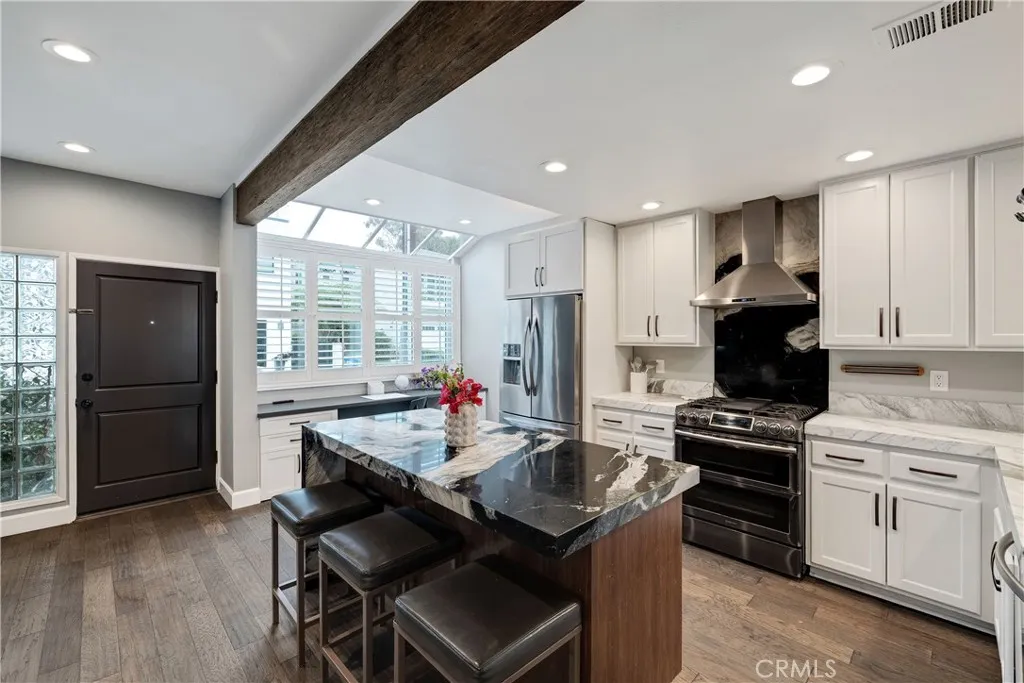 Welcome to your coastal retreat at 501 Herondo Street #50, an extensively renovated townhome just blocks from the sand in the heart of Hermosa Beach. Tucked within the highly desirable Moorings community, this light-filled residence offers its own private front-door entry on the quiet cul-de-sac of Hill Streetcreating a rare sense of privacy and neighborhood charm. Designed for effortless beach living, this 3-bedroom plus bonus room, 3-bathroom home blends modern upgrades, abundant storage, and a functional layout ideal for both everyday living and entertaining. The bright and airy living room features soaring ceilings, hardwood floors, a cozy fireplace, and sliding doors that open to a sunny patioperfect for morning coffee or evening relaxation. The updated kitchen is a chefs delight, complete with marble countertops, a center island with seating, stainless steel appliances, custom cabinetry, and a built-in pantry. Upstairs, the spacious primary suite offers a walk-in closet with custom built-ins and a beautifully updated en-suite bath. Two additional bedrooms and a full bathroom provide flexibility for guests, a home office, or a growing family. A standout feature is the versatile downstairs bonus room, located off the two-car garage with laundryideal for a home gym, office, playroom, or extra storage. Just moments from The Strand, the beach, and the greenbelt path, this home delivers the ultimate beach lifestyle. Enjoy easy access to Pier Avenues vibrant dining, shopping, and local favorites, then return home to the Moorings communitys relaxing resort-style pool and jacu