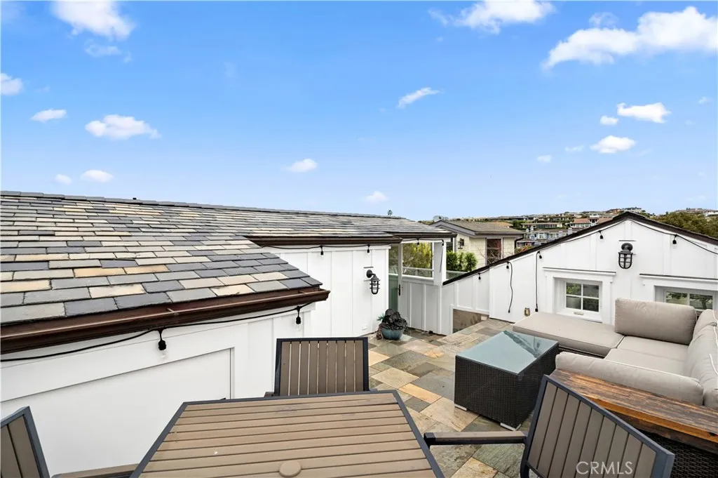 Fully furnished and truly turnkey, this exceptional Village residence is located in one of the areas most coveted pockets, with an elevated, tranquil setting along the prized 700 block where ocean views sweep from the upper level. Every detail has been curated with intention, showcasing exquisite design and superior construction. Wide-plank distressed wood floors, elegant wainscoting, soaring two-story ceilings, designer hardware, statement lighting, and an advanced technology system combine with crisp white cabinetry, paneled ceilings, and expansive windows to create a bright, inviting ambiance ideal for sophisticated coastal living. The main level features a gourmet kitchen with marble countertops, designer appliances, and abundant custom cabinetry, flowing seamlessly into a generous living area where disappearing panel doors open to a covered loggia with a cozy fireplace and ample seating, perfect for year-round enjoyment. The primary suite offers soaring ceilings and a designer bath with a soaking tub, walk-in shower, dual-sink vanity, and custom walk-in closet, creating a private retreat of unparalleled comfort. Upstairs, a spacious secondary en-suite bedroom provides a private bath with views and direct access to an expansive rooftop deck, where sweeping ocean vistas stretch to Catalina Island and wrap around to the golf course. Live the Corona del Mar Lifestyle with proximity to famed beaches, blue-ribbon schools, fine dining and exquisite shopping.