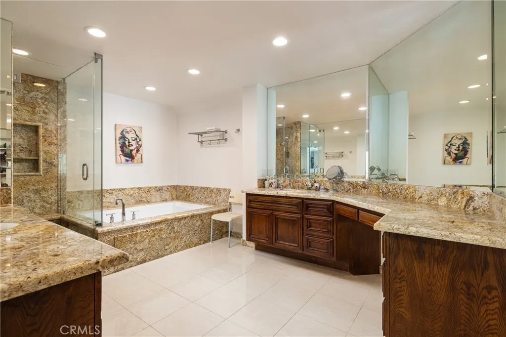Escape to your own private oasis in the heart of Nellie Gail Ranch. Set on a flat, tranquil corner lot, featuring 8 bedrooms and 11 bathrooms, within a generous 7,372 square foot floor plan, this entertainers estate seamlessly blends indoor luxury with resort-style outdoor amenities. Recent upgrades include new windows throughout, whole house PEX repipe, owned solar system, whole house water filtration system, whole house water softener, Vivint security system, and epoxy floors in the 3-car garage. The entry courtyard enchants with custom fountains, a koi pond, and double entry doors. Inside, a grand foyer with a wrought-iron adorned spiral staircase welcomes you. The light-filled living and dining area boasts vaulted ceilings, hardwood floors, and a fireplace, adjacent to your two main-floor ensuite bedrooms. A gourmet kitchen awaits with double ovens and dishwashers, a 6-burner cooktop, and an eat-in dining space open to the comfortable family room and bar. An expansive game room features a pub-style bar, private bathroom, billiards table and games, and direct access to the inviting pool area. Upstairs, retire to your palatial primary suite with a double-sided fireplace retreat, primary bath with jacuzzi tub, and walk-in closet. Private quarters on this level include 3 more fully en-suite bedrooms, 2 jack-and-jill suites, and an oversized office/bonus room with built-ins. Outdoors, experience the winding saltwater pool and spa with its upgraded grotto, Baja deck, and mosaic tile, all solar-heated and controlled via the Pentair smart app. The exterior also features firepla