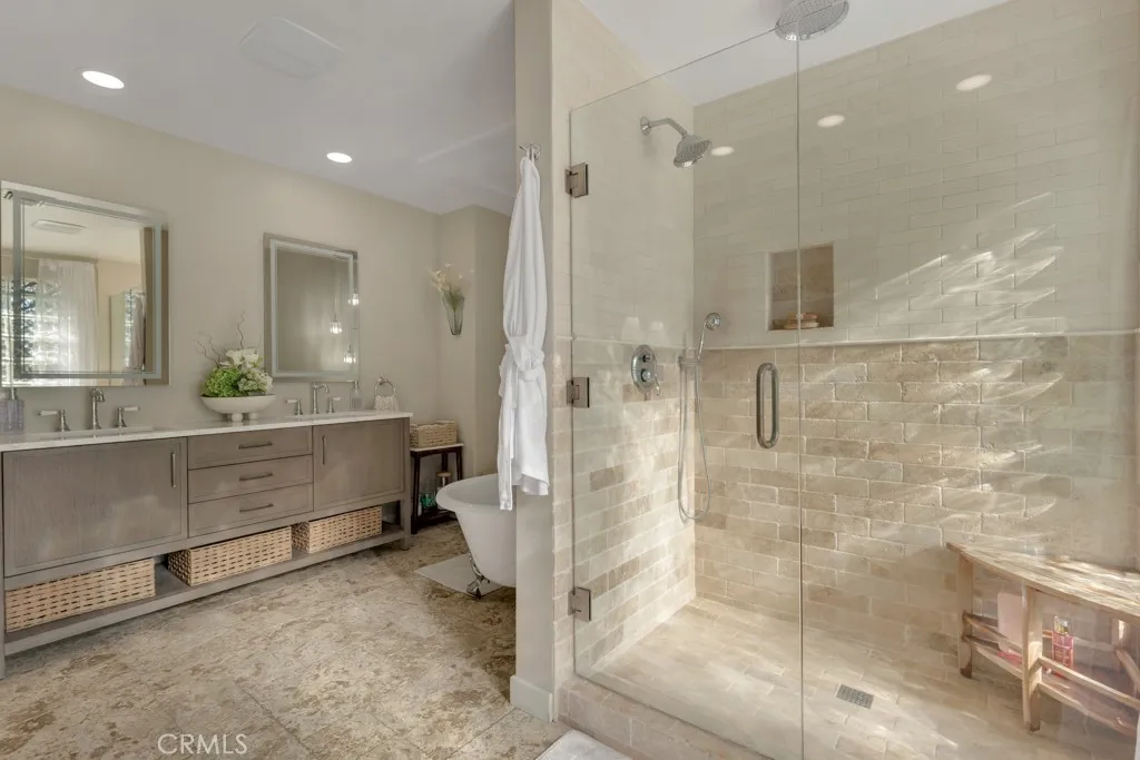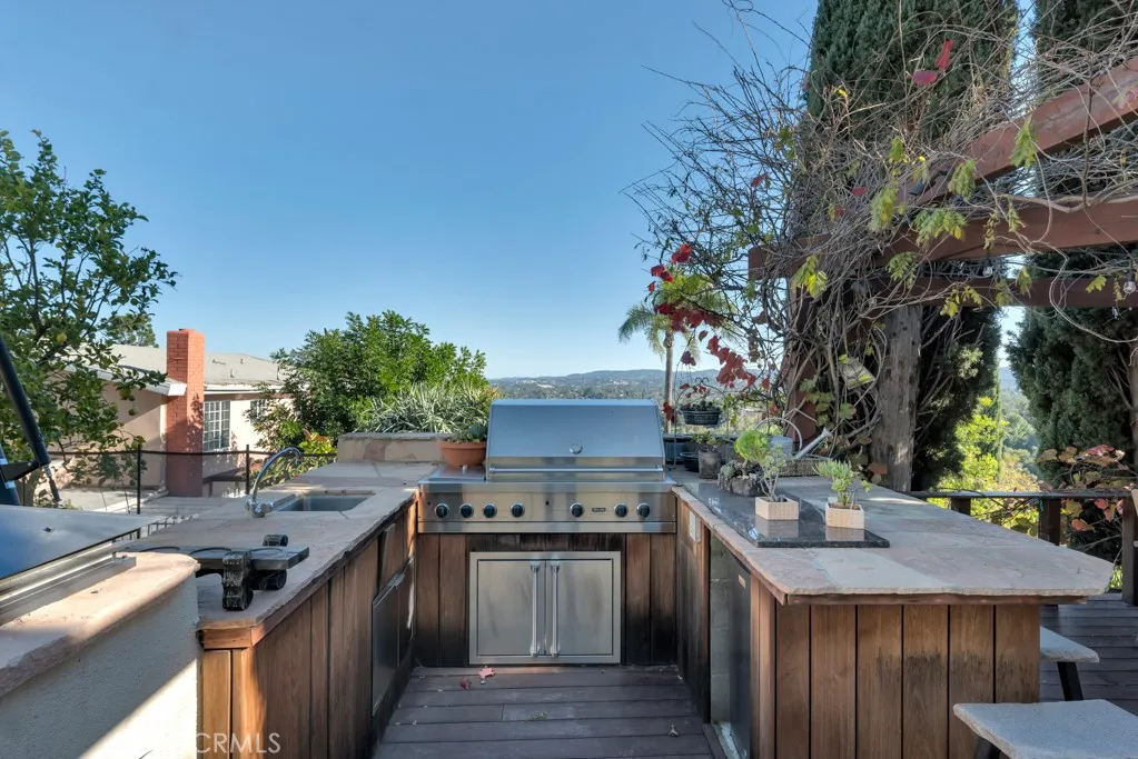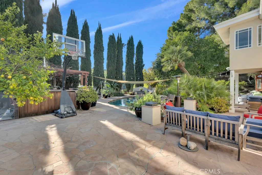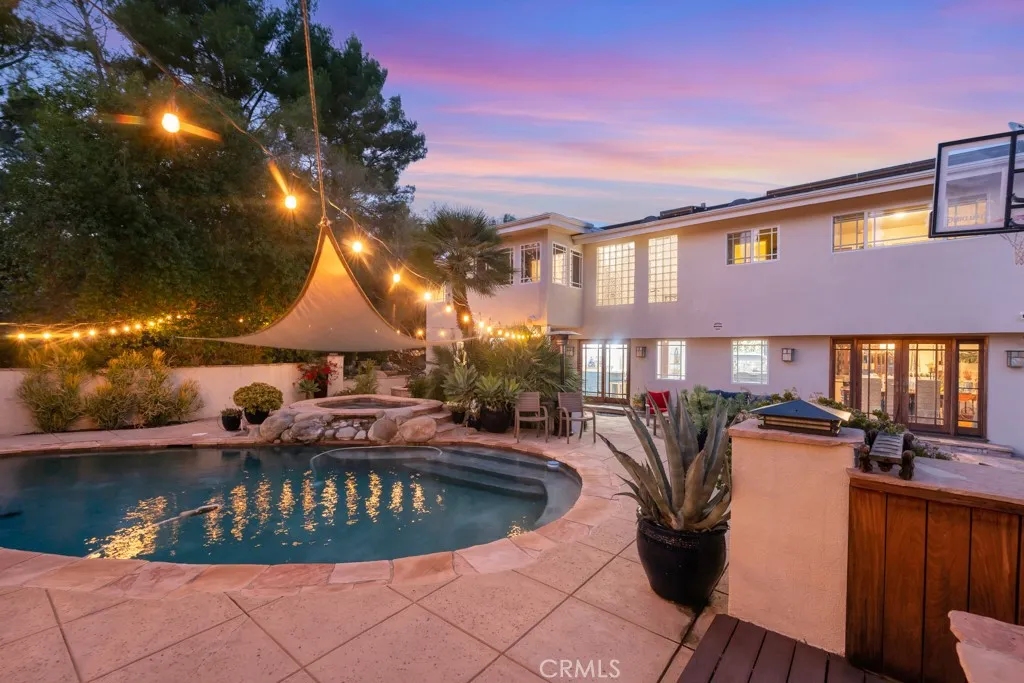This updated and remodeled 5 bedroom and 3 bedroom home is simply stunning! Tucked away at the top of a peaceful cul-de-sac in the coveted Knapp Ranch community and within the Las Virgenes School District, this beautifully home perfectly blends luxury, comfort, and community living. With over 3,100 sq. ft. of stylish, open-concept space on a quarter-acre lot, the home is designed for both relaxed living and effortless entertaining. The chef-inspired kitchen features a custom island, Quartzite countertops, stainless steel appliances, and a built-in bar that flows seamlessly into the sun-filled dining and living areas. Upstairs, the primary suite offers a private sunroom and sweeping Valley views, while the downstairs en-suite bedroom is perfect for guests or a home office. Smart dual-zoned Nest thermostats, paid-off solar, and a three-car garage with EV charging add modern convenience. Step outside to your own resort-style retreat, complete with a sparkling pool and spa, outdoor kitchen, and expansive deck surrounded by peaceful Valley views and exceptional privacy. Additional highlights include new ultra-quiet Chamberlain garage doors, a whole-house Ring security system, and daily Las Virgenes school pickup and drop-off. Close to parks, scenic trails, and shopping, this home offers the perfect balance of elegance, comfort, and community in the heart of West Hills.