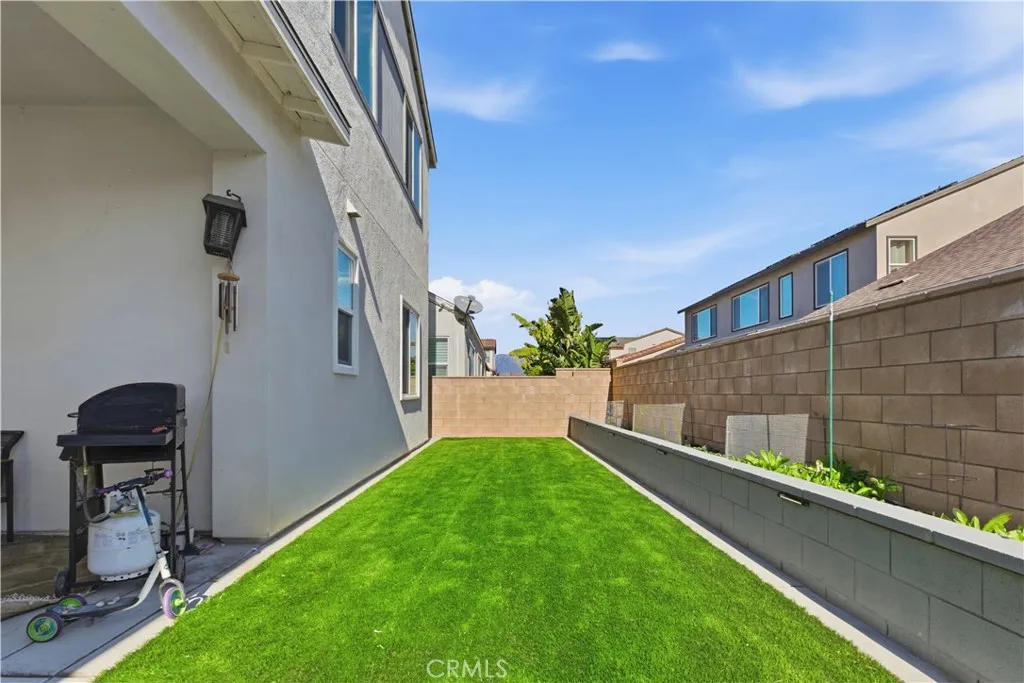 An ideal opportunity to own one of the largest floorplans in a neighborhood with rising values. Brand new rigid core luxury vinyl plank flooring in the entire second level of this modern luxury home. Located in one of Ontarios most exciting new communities and minutes away from the 60fwy & 15fwy. Built in 2021, this refined corner-lot residence offers thoughtful design, paid-off solar, and upgraded finishes throughout. A rare 3-car garage plus driveway parking provides exceptional convenience, while the homes layout balances flexibility, comfort, and modern function. The main level features a private office/den, a full bedroom and bath with walk-in shower, and an additional powder room ideal for guests, multigenerational living, or work-from-home needs. All bedrooms, stairs, and upper level have been upgraded with luxury high traffic vinyl flank flooring with a lifetime residential warranty. Upstairs, a spacious loft with window seating creates a versatile retreat for work, play, or relaxation. The backyard is designed for easy living and entertaining, featuring artificial grass, a large covered patio, a koi pond (koi to be removed), and a small vegetable garden all set against peaceful neighborhood tree views. Located within a new and growing luxury community, residents enjoy resort-style amenities including a dog park, playground, pool, heated spa, private cabanas, and a large clubhouse, with maintained common areas throughout. Conveniently close to Sprouts, local parks, schools, and the 60 & 15 freeways, with a large new park currently under development nearby. An idea