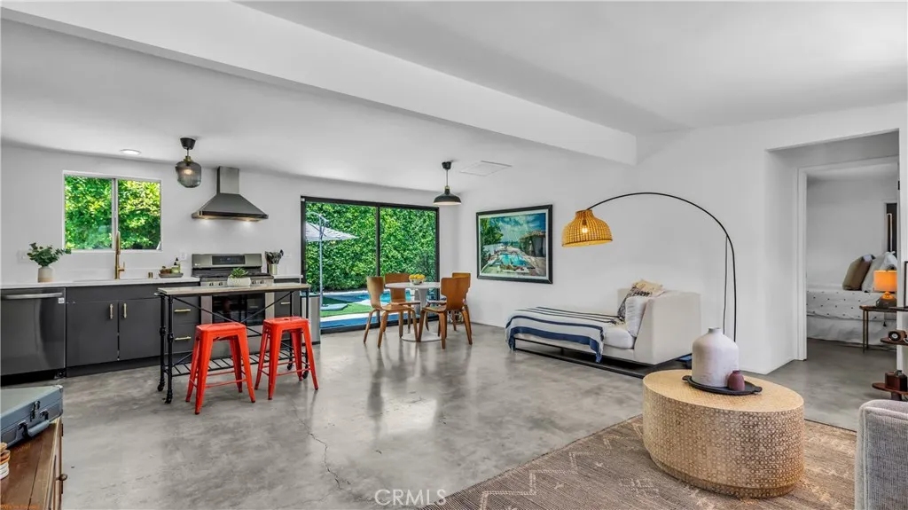 This is the one! Discover a stunning 1958 Mid-Century Modern pool home in World Famous Palm Springs, reimagined and updated by Los Angeles based HS Dwellings & Design in 2021. Expanded 4-bedroom, 3-bath layout, this home embodies desert cool with polished concrete floors, whitewashed walls, and expansive San Jacinto views. The open-plan living area is an entertainer's dream, with three guest bedrooms on one side and the primary suitepermitted as a junior ADUon the other, featuring a sitting area, fireplace, and direct pool/spa access. Flexible layout allows the master suite to be easily locked off, creating a separate, rentable unit if desired. Outside, your private oasis awaits on a corner lot, featuring mature trees, an al fresco dining space, firepit, and a brand-new pool and spa. Recent upgrades include a new roof, electric panel, bathrooms, and kitchen, washer and dryer, some doors and windows, pool equipment replaced in 2023 (pool pump in 2025), blending mid-century charm with modern convenience. Situated just minutes from the Uptown design districts shopping, dining, and nightlife, this spot is perfect for a full-time residence, second home, mid term rental, or short term Airbnb. Feee simple land, which means you own the land. No HOA. Sale can include furnishings.The neighborhood short-term rental permits are still available, dont miss the chance to live, invest, and unwind in pure Palm Springs style!