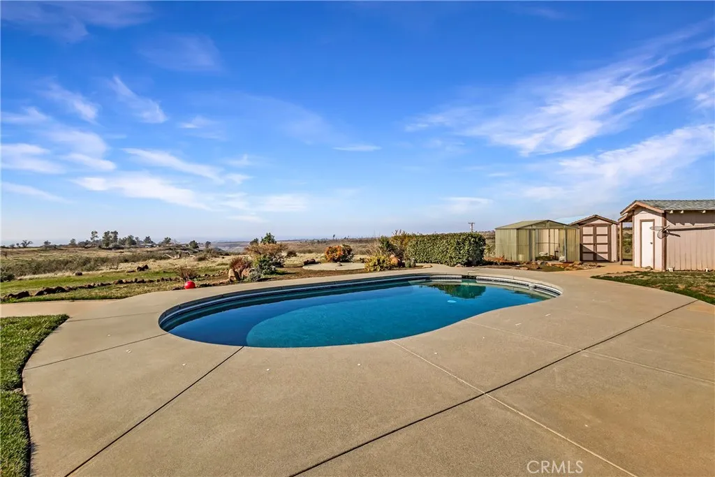 Fantastic Lower Paradise Location for this 15 ACRE property. VIEWS of Chico, Sutter Buttes and the Coastal Mountain Range! Have amazing views every day! Looking for space then this is it! BRING YOUR HORSES! Great Horse property to develope! Tons of flat area for a SHOP, ADU or both! This 1990 built home offers 3 bedrooms plus office, 2 baths, 3 car garage with 1/2 bath and third bay garage door being extra tall! There is also an in-ground POOL with incredible views!!! New interior paint, Mannington laminate flooring, Marquis carpet with #8 Pad, bathroom faucets, toilets, garage, kitchen and security lights, GE range, LG front load washer and dryer, Pool Pump, booster pump, filter and safety drains, chimney cleaned, and spark screen replaced. The home offers a large living room with vaulted knotty pine tongue & groove ceiling, bay picture window and a floor to ceiling rock hearth with a free-standing Schrader Wood Stove. Off the living room is the dining area & kitchen. The kitchen offers tons of cabinets, solid surface counter tops, breakfast nook, 7' eating bar and tiled floors. Down the hallway are built in cabinets, spacious guest bedrooms and the office. The primary bedroom has vaulted knotty pine tongue & groove ceilings, views of the valley and a slider to the back deck. The primary bath has dual sink vanity with tiled counters and a tiled step in shower. The guest bath offers tiled counters and a tiled tub/shower combination. There is a cummings back up generator system. The well has a 1000 gallon holding tank. The home is on 9.89 acres and this property is including