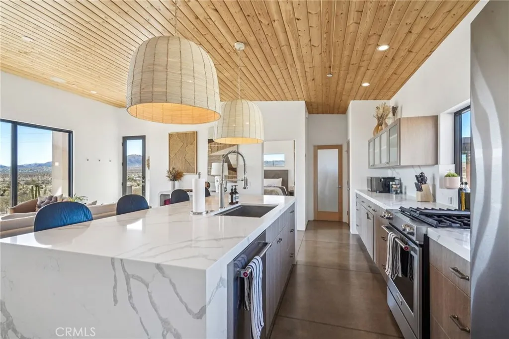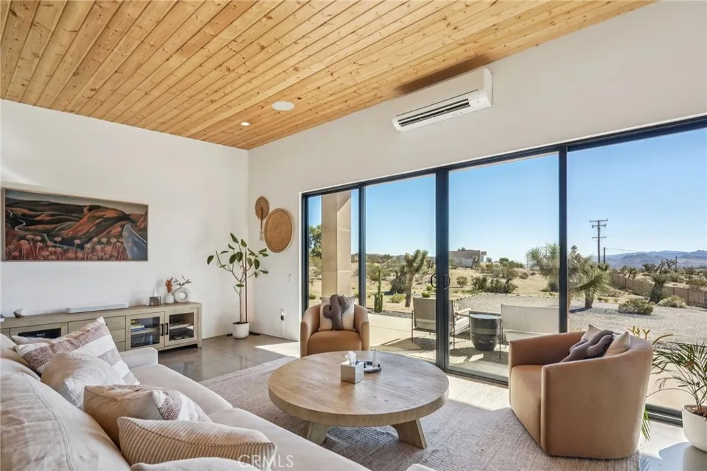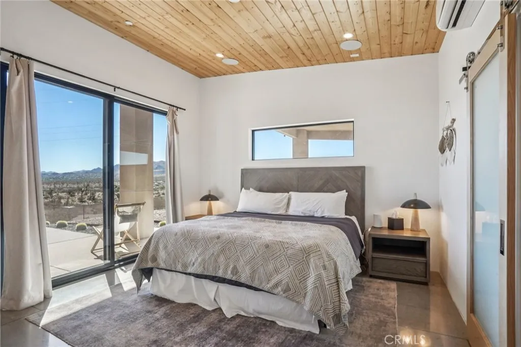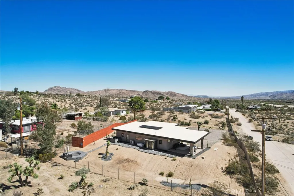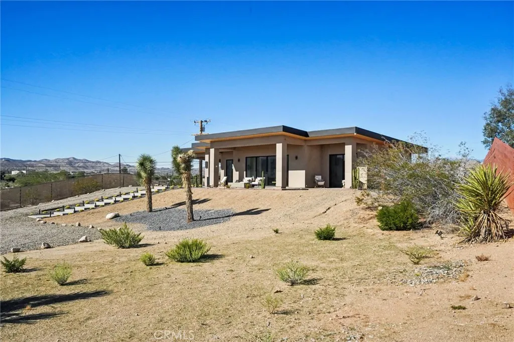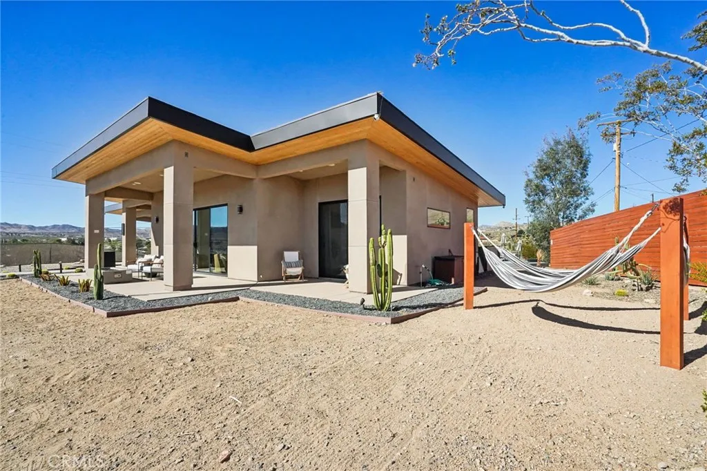 Welcome to 59080 Nelson Avenue Very strong Airbnb home, with over $91,000 of short term rental income for the 2025 calendar year. A newly constructed 2-bedroom, 2-bath modern desert retreat built in 2023, perfectly positioned in the sought-after Yucca Mesa neighborhood, just minutes from Joshua Tree National Park, Pioneertown, and downtown Yucca Valleys shops and restaurants. This exceptional home seamlessly blends sophisticated design, smart technology, and serene desert surroundings for the ultimate indoor-outdoor lifestyle. The property is equipped with solar panels, providing energy efficiency and sustainability year-round. Currently operating as a highly successful Airbnb with numerous positive reviews, the home offers both investment potential and luxurious livability. Enter through the automatic gate into a fully enclosed property surrounded by a 10-foot wood privacy fence and lush, drought-tolerant landscaping with Bluetooth-controlled irrigation. Outdoor spaces were designed for relaxation and entertainment, featuring a custom deck, cowboy pool with lighting, Plunge cold plunge, jacuzzi, Clearlight UV sauna, gas fire pit, and RH fountain. Enjoy music through the outdoor SONOS speakers or unwind in one of the hammocks while taking in panoramic desert views. Every detail has been thoughtfully curated to create a seamless blend of comfort, privacy, and luxury. Whether as a full-time residence, weekend escape, or high-performing short-term rental, 59080 Nelson Avenue captures the essence of elevated desert living where tranquility meets modern design, just moments fr