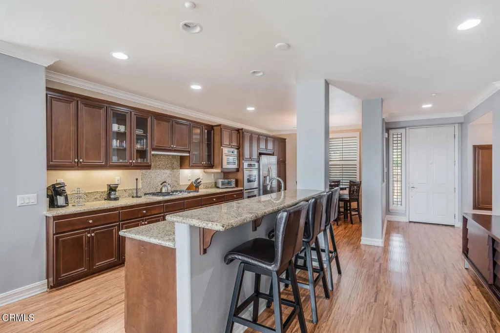 Welcome to an elevated coastal lifestyle in Port Marluna at Seabridge, where refined marina-front living meets the relaxed rhythm of Ventura County's shoreline. Perfectly positioned within one of Southern California's most picturesque harbors and just moments from expansive sandy beaches, this exceptional residence places you at the center of natural beauty, recreation, and coastal culture. Set along Channel Islands Harbor, the gateway to Channel Islands National Park, you are ideally located halfway between Malibu & Santa Barbara, surrounded by ocean air, scenic waterways, & endless adventure.This is a lifestyle defined by water, light, & leisure. Launch a kayak or paddleboard steps from home, enjoy boating days on the harbor, tee off at nearby golf courses, explore local wineries, browse coastal boutiques, or savor waterfront dining at nearby favorites. Prefer a slower pace? Relax on your private balcony as boats glide by, harbor reflections shimmer, & ocean breezes carry the calm of coastal living into your day.Inside, this top-tier marina-view condo is thoughtfully designed with timeless finishes & an open, inviting layout. The chef's kitchen anchors the home with a generous granite island & bar seating, rich wood cabinetry, & a premium stainless-steel appliance package, ideal for entertaining or quiet evenings in. Living & dining areas flow seamlessly together, accented by crown molding, recessed lighting, & a warm fireplace. A full-height sliding glass door opens to the balcony, creating effortless indoor-outdoor living for morning coffee or sunset gatherings.The spac