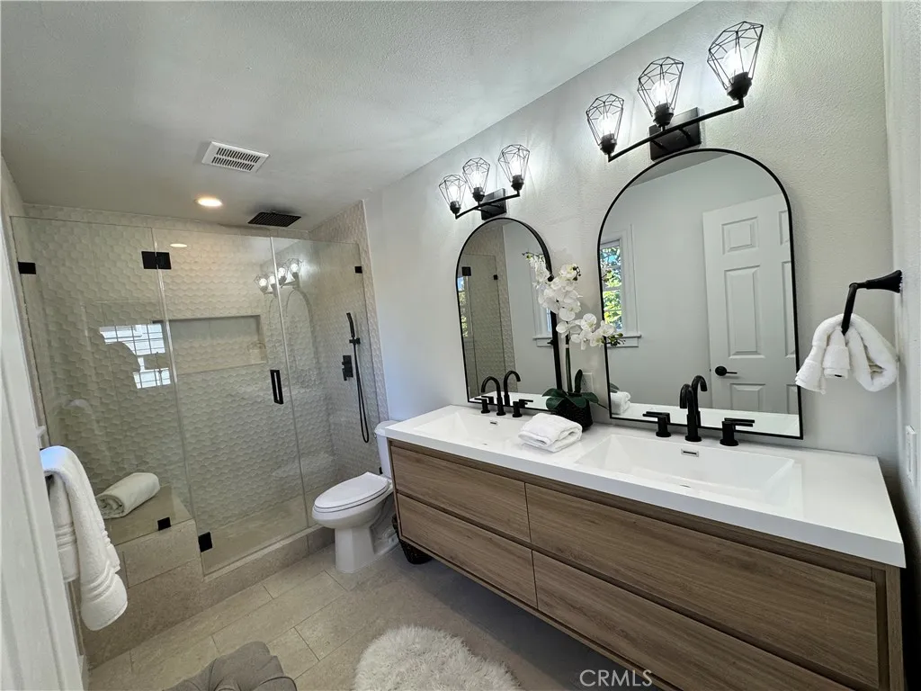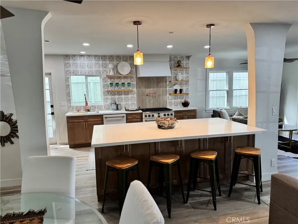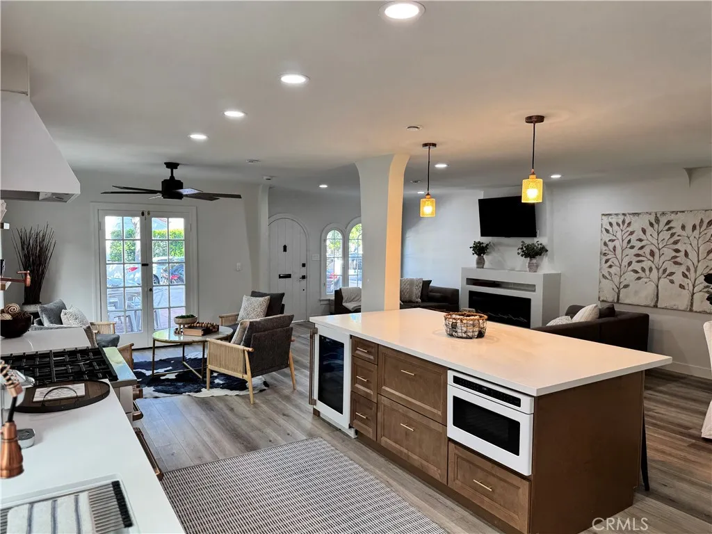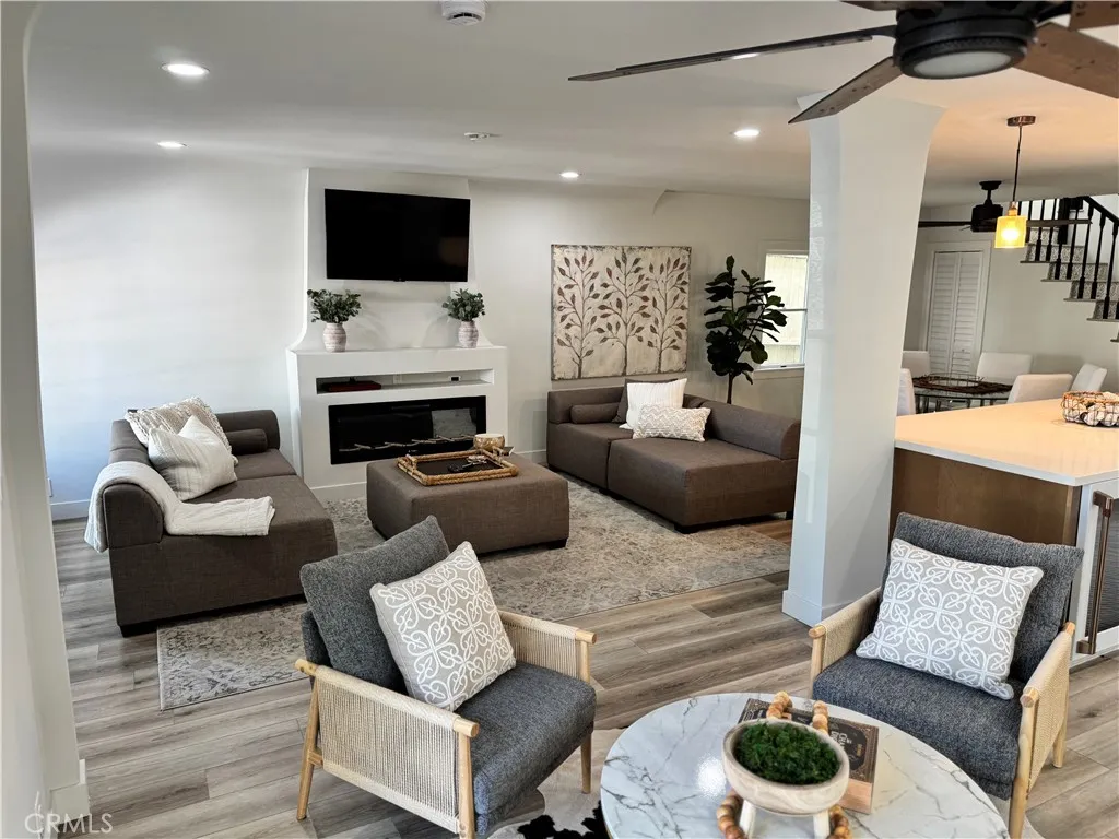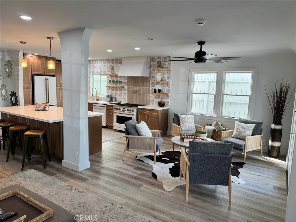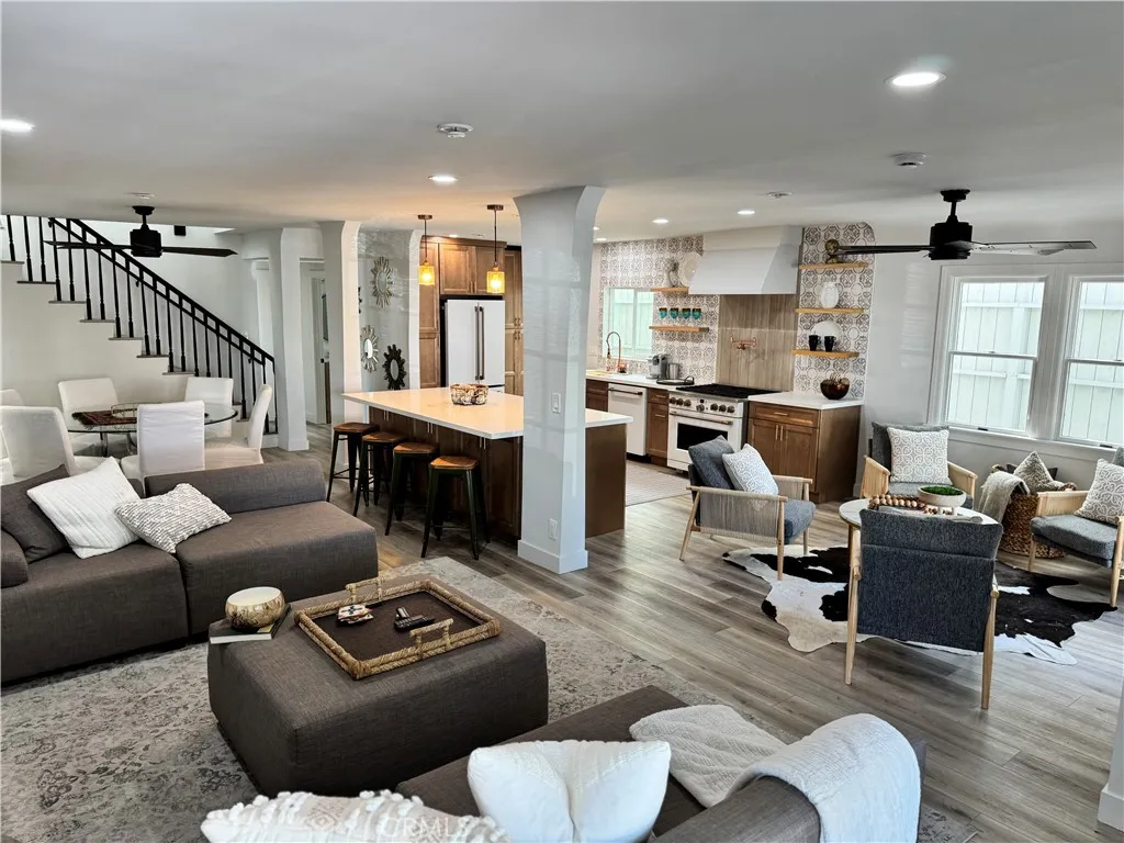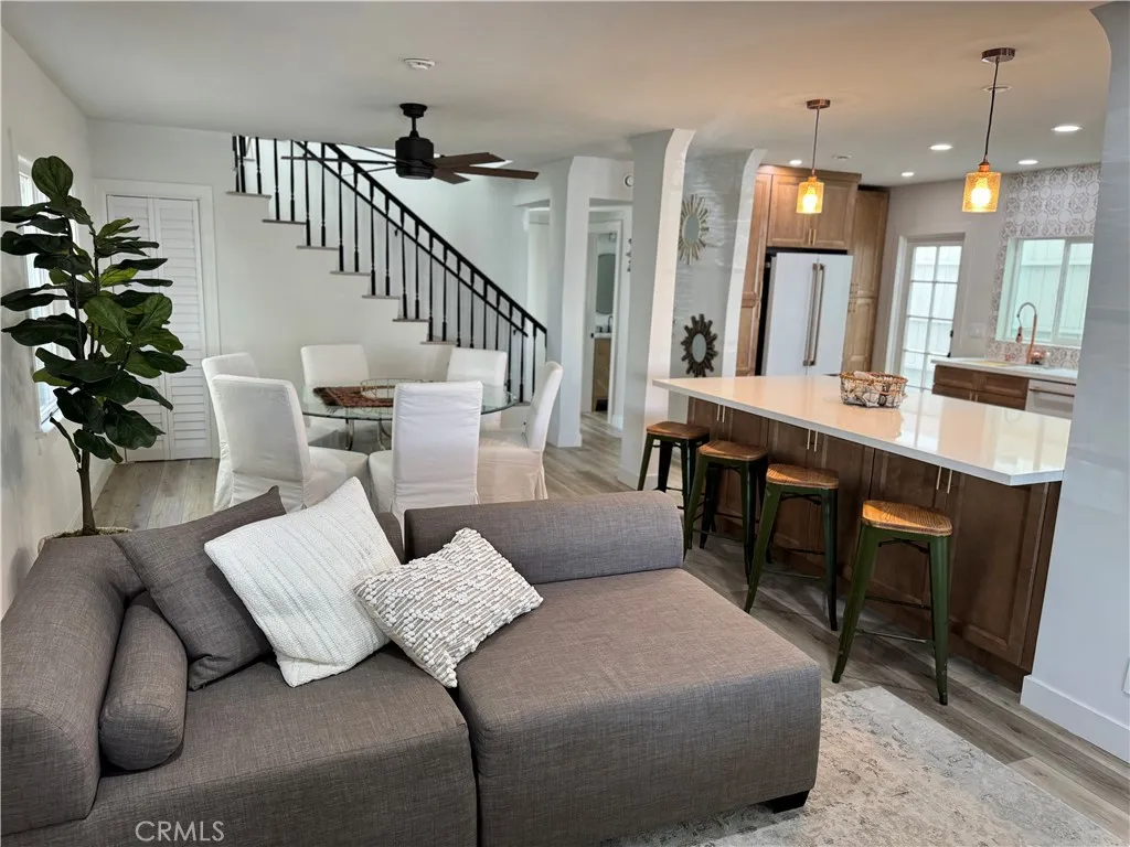 This thoughtfully updated Spanish-style residence offers a bright, welcoming layout with a seamless blend of classic character and modern comfort. Natural light fills the interior, highlighting Luxury Vinyl flooring, clean finishes, and a well-defined flow across both levels. The main level features formal living and dining spaces alongside a chef-inspired kitchen with custom cabinetry, a large center island, stone-look counters, and high-end appliances. A main-floor bedroom and full bath add flexibility, while the gated, hardscaped front patio extends the living space outdoors. Upstairs, the primary suite provides a spacious retreat with a walk-in closet, spa-style bath, and private balcony. A secondary en-suite bedroom and additional outdoor sun deck complete the upper level, offering multiple indoor-outdoor living options. Recent improvements reported by the seller include a new roof, updated electrical and plumbing systems, serviced HVAC with new ductwork and vents, new flooring, and refined finishes throughout. The property is currently permitted for short-term rental use, with an active permit expiring July 18, 2026. Conveniently located near coastal amenities, dining, recreation, and everyday services, this home offers a versatile layout designed to support both everyday living and extended stays.