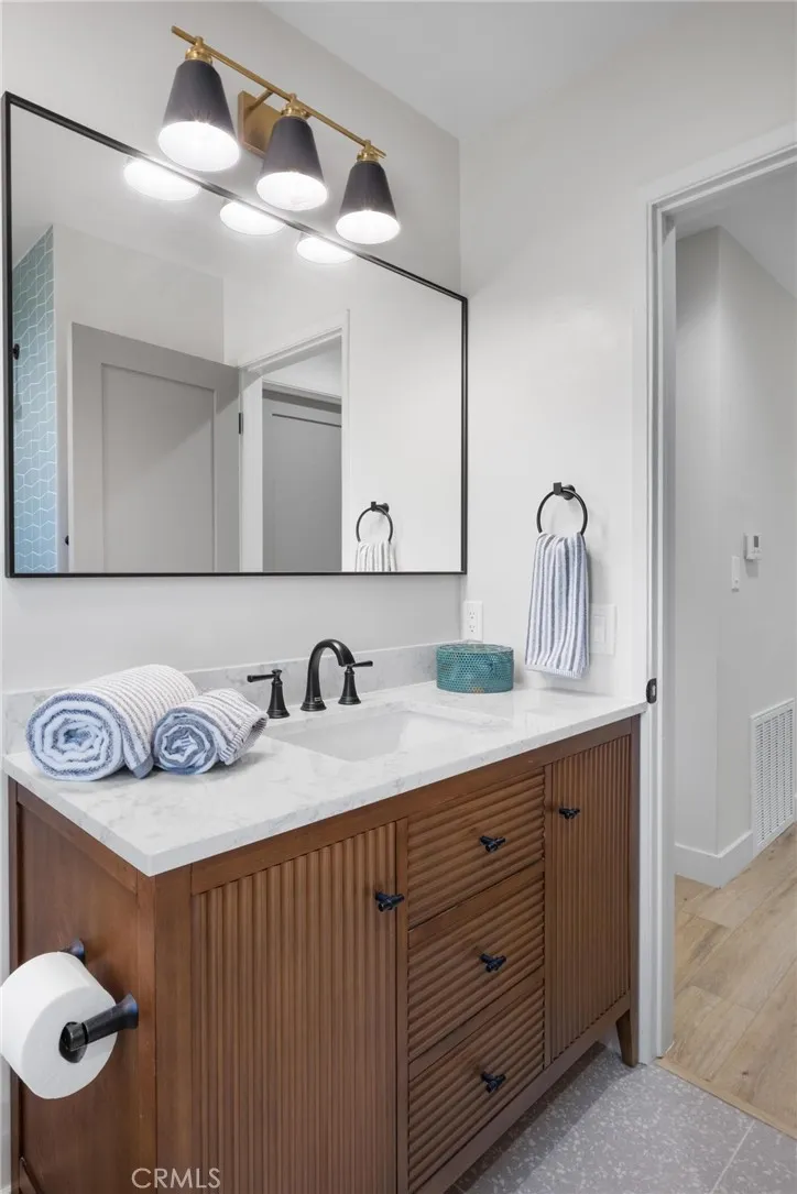 Expansive ocean views, modern design, and a coveted coastal addressthis fully renovated 4-bedroom (+bonus room), 3.5-bathroom home in the heart of the Hollywood Riviera brings elevated South Bay living to life with thoughtful style and flexible space throughout. Upstairs, panoramic accordion glass doors invite the outdoors in, connecting the living room, dining area, and bold designer kitchen to a spacious entertaining deck with unobstructed views from the Pacific Ocean to downtown Los Angeles. The kitchen makes a striking impression with natural wood cabinetry, black quartz countertops, stainless steel appliances, and open shelving that blends warmth with modern edge. All three upstairs bedrooms are generously sized, including the primary suite with direct access to the back deck and view. The ensuite bathroom is finished with clean, contemporary touches, and every bathroom in the home has been fully remodeled with a cohesive and timeless aesthetic. Downstairs offers a flexible layout ready to meet your needswhether you envision a second primary suite, media room, guest retreat, or quiet lounge, the expansive bonus room delivers. A large bathroom with soaking tub, dual vanities, and walk-in shower adds spa-like comfort, while an additional bonus space nearby is perfect for a home office, playroom, or workout area. The oversized laundry room adds even more versatility, with plenty of space for folding, storage, or creative use. Outside, new drought-tolerant landscaping enhances the homes curb appeal, and a peaceful backyard with a brand-new pergola provides the perfect sett