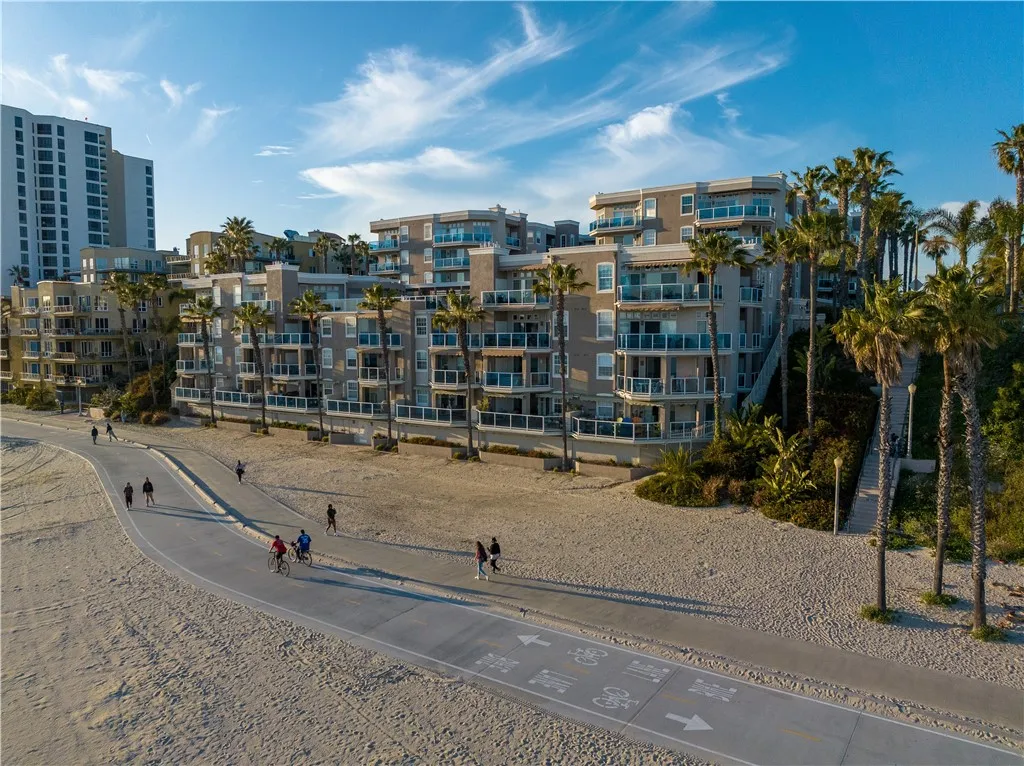 This ocean-facing corner residence offers unobstructed, panoramic views of the Pacific from nearly every living space. The open-concept layout is designed for both convenient everyday living and entertaining, with open flow between the living, dining, and kitchen areas, all framed by expansive windows and sliding glass doors that capture views of the ocean, Catalina Island, Thums Islands, the marina, the Queen Mary, and the coastline beyond. The kitchen is well appointed with granite countertops, stainless steel appliances, soft-close cabinetry and drawers, and generous storage. The primary suite features ocean views, an en-suite jet bathtub, and a spacious walk-in closet. Two additional bedrooms provide flexibility for guests, a home office, or secondary living space. Additional features include in-unit laundry, two rare side-by-side parking spaces, and dedicated storage. The building offers a full suite of resort-style amenities including a pool, spa, sun deck, fitness center, bike storage, and community room. Direct beach access puts the sand and shoreline just steps from your door. Ideally located near Long Beachs best dining, shopping, waterfront attractions, and transportation corridors, this is a turnkey opportunity to own a true beachfront property with views, layout, and amenities that are increasingly hard to replicate.