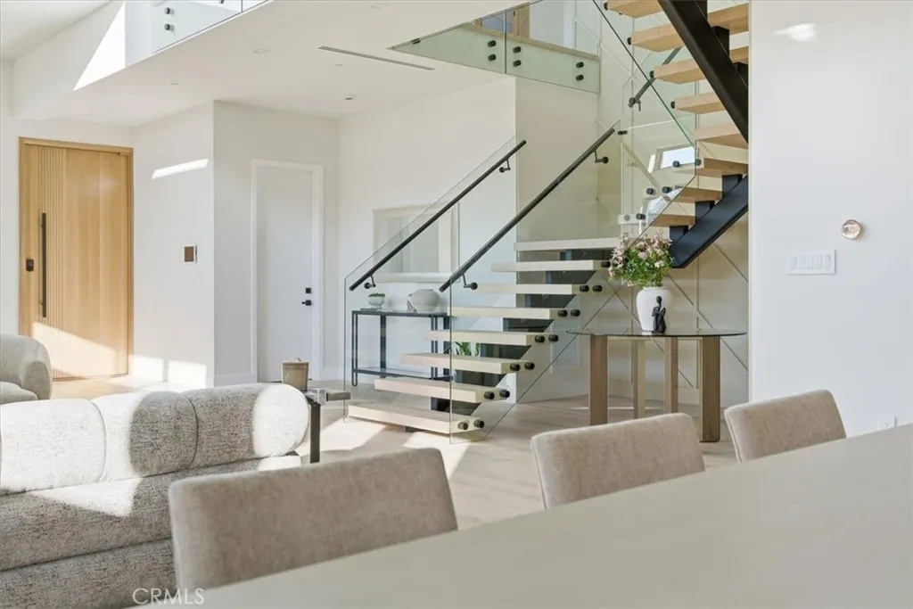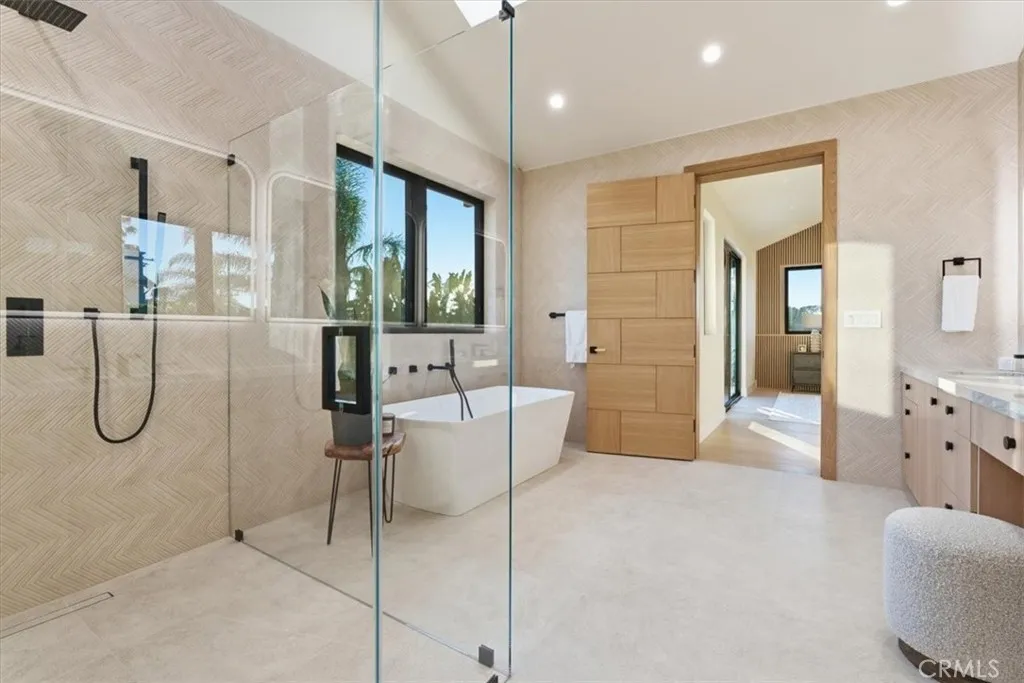 Imagine stepping into a home where every detail reflects intention, refinement, and contemporary coastal elegance. As you cross the threshold through a dramatic 48 White Oak pivot door, youre immediately enveloped by light, scale, and a sense of quiet luxury. Wide-plank White Oak floors stretch beneath your feet, custom wall paneling and bespoke plaster finishes surround you, and curated designer lighting casts a warm, sophisticated glow throughout the living spaces. Move effortlessly into the heart of the homea chefs kitchen designed not just to function, but to impress. Custom White Oak cabinetry, Taj Mahal Quartzite countertops and backsplash, an expansive 11-foot island, and a beautifully appointed bar area create the perfect setting for both intimate mornings and elegant evenings. A full suite of professional Thermador appliances elevates every meal, every gathering, every moment spent here. Walls of glass dissolve the boundary between indoors and out as expansive sliding doors open to balconies with views, a striking outdoor linear gas fireplace, heated patio ceilings, and a refined outdoor kitchen framed by thoughtfully designed landscaping. Whether hosting unforgettable evenings or savoring quiet sunsets, the home flows effortlessly, inviting you to linger. Retreat to the primary suite, a private sanctuary designed for restoration. Vaulted ceilings create a sense of volume and calm, while the spa-inspired bath offers a soaking tub, double vanities, frameless glass shower, and a spacious custom walk-in closetan indulgent space that feels both serene and luxurious. Th