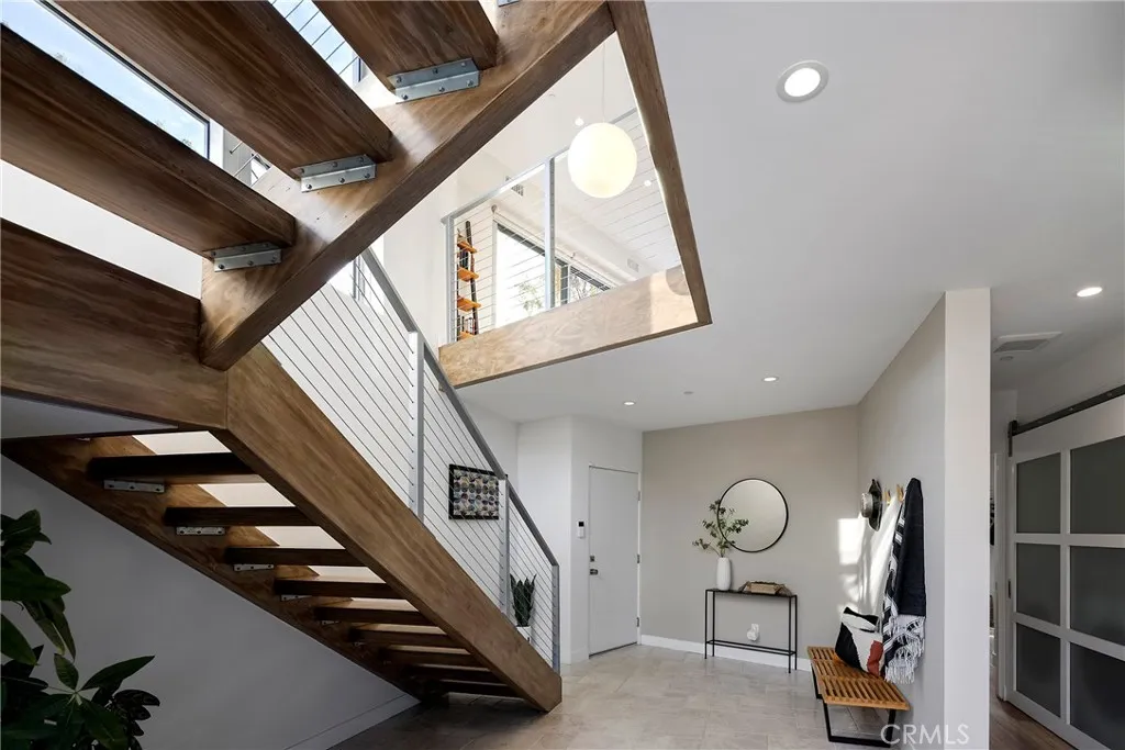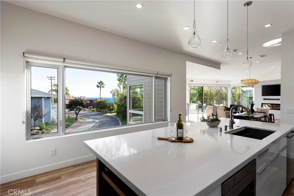 Tucked away on one of Southwests most special horseshoe streets, this ocean-view home offers true serenity. Newly-built in 2017 from the ground up overlooking the lush canyon beyond, this offering is among the finest recent opportunities. Located between the Riviera District & Lasuen neighborhoods, the location couldnt be better. Surrounded by mature trees, the home offers a level of privacy rare to come by this close to the beach. Strategically designed, this custom-build offers a sophisticated level of contemporary architecture with ocean views from the upper living space. Upon arrival, the front elevation spans an impressive 116 of frontage with a generous 6,800 SF lot. A dynamic design welcomes you inside to a formal entry. Large windows flood the space with natural light through a custom wrapping wood staircase. On the lower level, the primary suite faces the canyon with its own private deck, a luxurious bathroom, dual sinks, walk-in shower, & spacious walk-in closet - very serene & private on the canyon. Down the hallway, two bedrooms share a modern Jack&Jill bath with dual sinks, privacy toilet, & walk-in shower. Beyond that, a full suite with elevated ceilings, (ADU potential: separate access, loft, futured for kitchenette or laundry). Up an artistic staircase leads to modern & open living spanning the kitchen, dining, & family room, all framed by walls of glass, high ceilings, & wide plank flooring. A European-inspired kitchen features stainless appliances, a large island with bar seating, walk-in pantry, balcony, skylights & picture window to the crisp ocean view