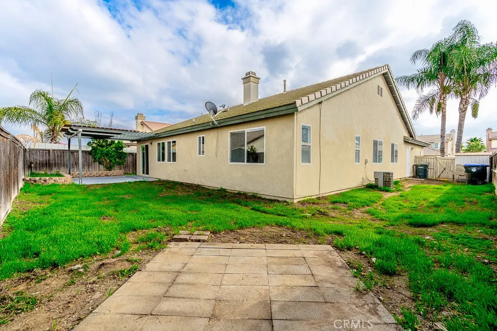 Beautiful single-story 4-bedroom home, thoughtfully updated and truly move-in ready. This home features brand-new luxury vinyl flooring throughout the living room, dining room, family room, hallway, and all four bedrooms, along with fresh interior and exterior paint. The updated kitchen showcases new Quartz countertops, a new stove, and a new dishwasher. The bathrooms are refreshed with new Quartz countertops, new Shaker cabinets, one reglazed shower, and one reglazed bathtub, creating a clean, modern feel throughout. The backyard is perfect for entertaining, featuring a newly painted partial wood patio coverideal for growing vine plants for fresh produce or decorative greenery, with the option to add solar lighting for natural illumination at nightalong with newly painted patio flooring. This inviting outdoor space is perfect for relaxing and gathering with family and friends. The garage walls have also been newly painted, adding to the homes clean and well-maintained appearance. Just minutes to Harmony Elementary School and West Valley High School, and less than 5 miles to Diamond Valley Lake for hiking, biking, and boating. Conveniently located close to Page Plaza Shopping Center, offering a variety of dining and shopping options including Albertos Mexican Food, 369 Noodle House, Daves Hot Chicken, Farmer Boys, Subway, Starbucks, U.S. Bank, gas stations, Walmart Supercenter open 24 hours, Planet Fitness, Famous Footwear, salons, and more. A perfect opportunity for comfortable, single-level living.