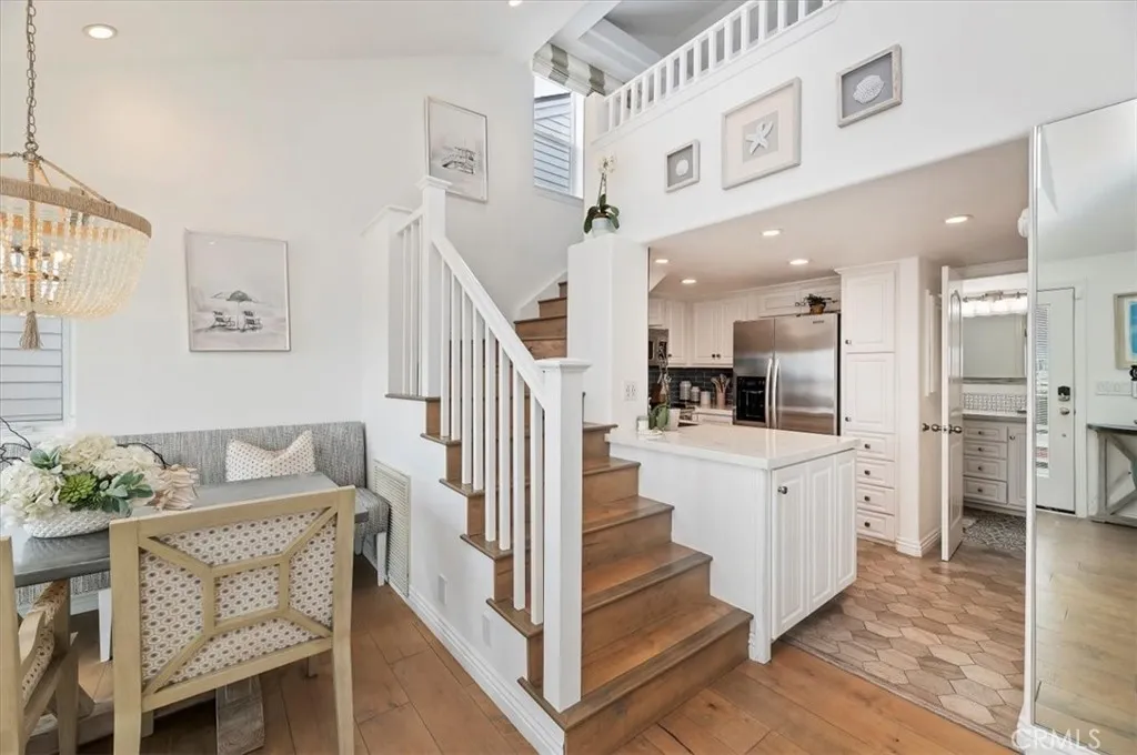 ***NEW PRICE***Wake up to shimmering bay views, salty ocean air, and the sound of water just outside your door. Located directly on the waterfront within the exclusive Lido Peninsula community, 58 Beach Drive offers a rare opportunity to own a true bayfront retreat in the heart of Newport Beach. This beautifully updated coastal residence is designed to embrace its setting, with expansive windows, vaulted ceilings, and an open living space that captures natural light and panoramic views throughout the day. The main living area flows seamlessly to the outdoor patio and elevated viewing deck with glass railings, creating the perfect backdrop for sunset dinners, morning coffee, and effortless entertaining. The interior blends clean, timeless finishes with relaxed beach-house style. The kitchen features white cabinetry, quartz countertops, stainless steel appliances, and a functional layout ideal for hosting. A built-in bar with an ice maker adds to the homes entertaining appeal. Both bathrooms have been thoughtfully remodeled with designer tile, custom vanities, and spa-inspired details. The flexible floor plan includes two private bedroom suites, one on each level, offering ideal separation and privacy for guests. A bonus loft space provides room for a home office, reading lounge, or creative studio. Additional highlights include engineered wood flooring, LED lighting, central air and heat, electric window shades, copper plumbing, and generous storage throughout. Beyond the home, enjoy access to an unmatched lifestyle: private beach, community pool and spa, fitness center, clu