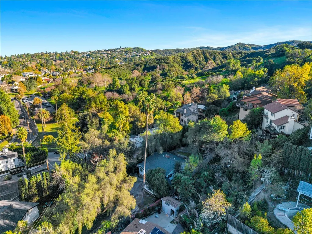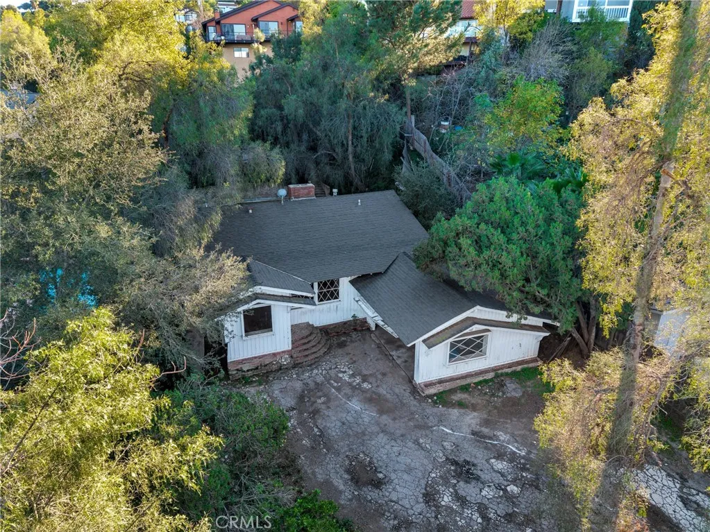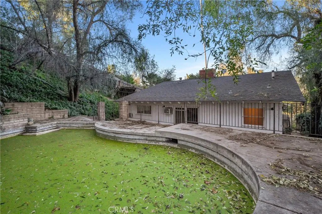 Tucked on a generous 12,962 sq ft lot in the highly sought-after hills of Woodland Hills, south of Ventura Blvd, this 2-bedroom, 1.5-bath, 1,415 sq ft property presents a true fixer-upper opportunity for investors and developers looking to reimagine and add value in a premier location. The home is set back from the street up a long driveway edged with mature trees and vegetation for added peace and privacy. The home has an open floorplan with L-shaped living and dining area anchored by an imposing double-sided brick fireplace. On the other side is an informal family room with backing brick fireplace and sliding glass door access out to the yard. A good-sized kitchen has a convenient breakfast nook area, adjacent utility room with laundry hookups, and a convenient powder bath. Down the hall are two bedrooms, one more sizable to act as primary, and a shared full, hall bath with separate tub and shower. The structure is rife with possibilities for renovation, expansion, or potential reconfiguration to maximize the lot and hillside setting. Outdoors, the generous parcel extends back and up the slope, featuring a large side yard, an existing pool area, and a concrete pad at the top of the hill that invites reimagining as terraces, outdoor entertaining spaces, or a statement viewpoint. The property is serviced by a septic system and is ideally positioned near Taft Charter High School, Serrania Park, and Woodland Hills Country Club, with convenient access to shopping, dining, and entertainment along Ventura Blvd, as well as an easy drive to Pacific Palisades, Malibu, and the City.