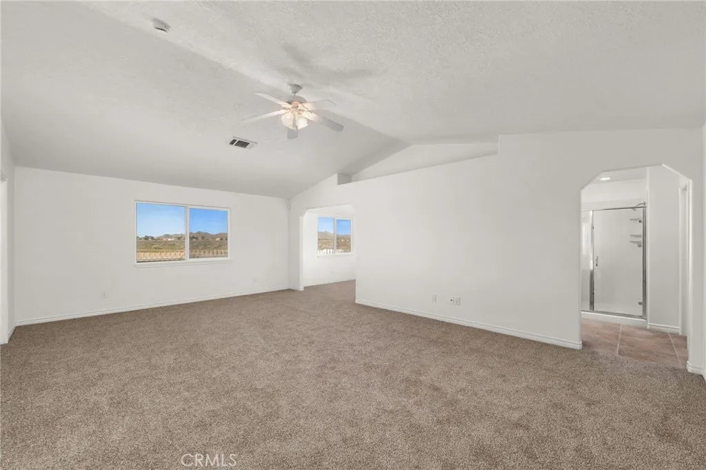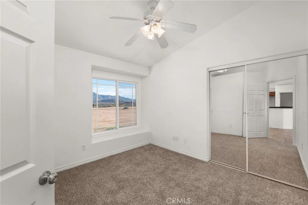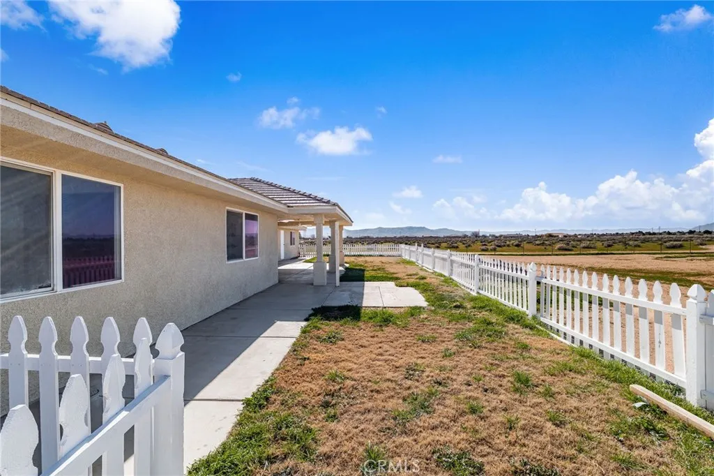 CUSTOM TURNKEY ONE STORY, MOUNTAIN VIEWS, LOW UTILITY COSTS, AND NO NEIGHBORS... A beautifully maintained single-story home that has true pride of ownership, offering endless privacy, and space. Located on a giant 38,895 sq ft lot. Featuring 4 bedrooms, 2.5 baths, 2,259 sq ft of true living space, and fresh interior and exterior paint. Have control over your utility bills with well water, propane gas, and septic, this property delivers lower monthly overhead, more control, and wide-open living. This move-in-ready home showcases a open concept floor plan with high ceilings, dual-pane windows, and a tasteful blend of tile and fresh carpet throughout. The light-filled living room opens to an entertainer-friendly layout, while the open kitchen features recessed lighting, abundant cabinetry, a large peninsula and center island that is equipped with stainless steel appliances, a walk-in pantry, and an adjoining dining area. The family room connects seamlessly to the kitchen and includes a wood-burning fireplace, direct patio access, and a nearby guest bathideal for hosting. All four bedrooms are well sized, with a large private primary suite offering an additional room off of the primary mountain views, a large walk-in closet, and a spa-style bath with dual sinks, soaking tub, glass-enclosed shower, and private commode. Additional highlights include a dedicated laundry room, covered patio with ceiling fans, white picket fence enclosure with lush grass, oversized concrete driveway, and a finished 3-car direct-access garage with ample off-street parking. Enjoy peaceful desert livin