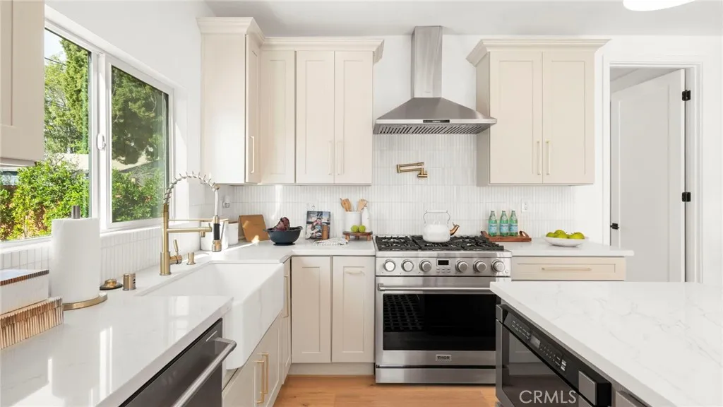 Welcome to to this Single Family Home with an ADU in the neighborhood of View Park!! Completely renovated from top to bottom the 3-bedroom, 2-bathroom Home with modern upgrades, including new windows, electrical, plumbing, HVAC system, and main sewer line. The open-concept living space features a bright and airy design with a spacious kitchen with quartz countertops, a breakfast area, and new stainless steel appliances, including a stove, oven, refrigerator, and dishwasher. A bonus area provides the perfect space for a home office, adding flexibility to the layout. Enjoy your mornings or entertain guests on the expansive deck, accessible from both the kitchen and the primary suite, while overlooking the beautifully landscaped backyard with a new sprinkler system. Additional upgrades include a brand-new tankless water heater for maximum efficiency. Adding incredible value to this property is the newly built 1-bedroom, 1-bathroom Accessory Dwelling Unit (ADU) at 5449 1/2 S Victoria Ave. This designed space boasts a modern kitchen with quartz countertops and new stainless steel appliances, including a stove, microwave and refrigerator. The living area, in-unit laundry, and brand-new electrical, plumbing, windows, and mini split make this ADU completely move-in ready. Like the main home, it also features new wide-plank engineered flooring throughout. Whether you're looking for a rental income opportunity, guest house, or additional living space. This home is within walking distance to the Crenshaw metro line and popular shops and eateries like Jon & Vinny's and just minutes fro