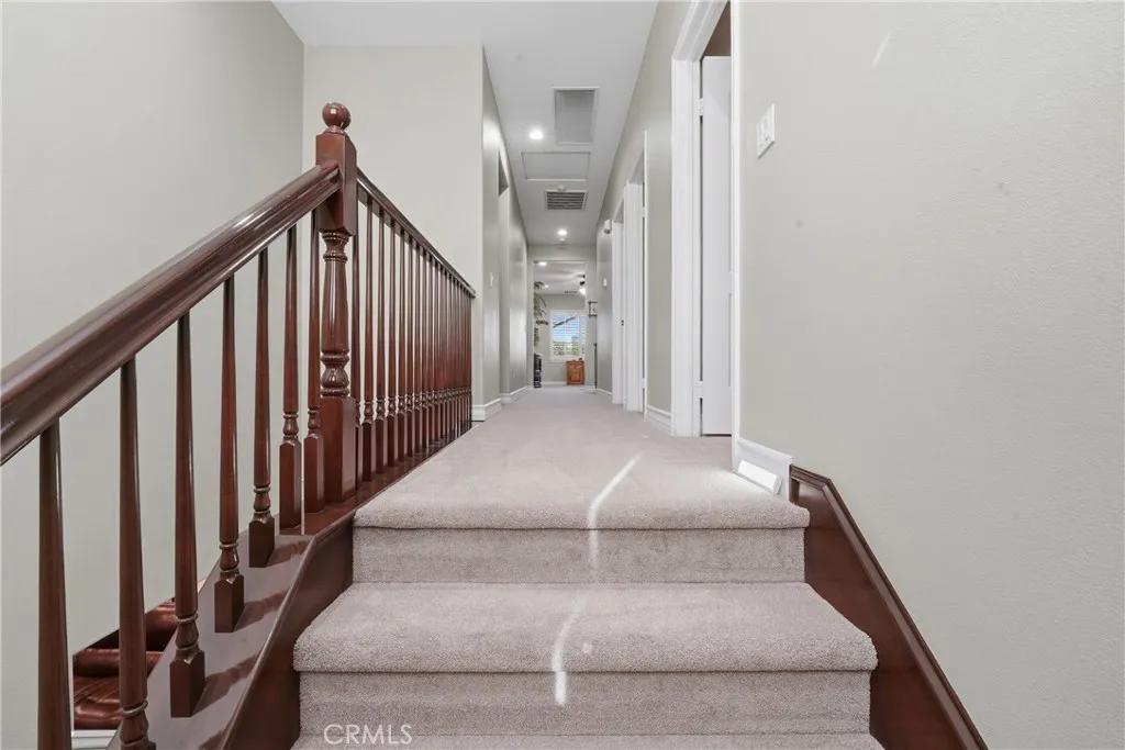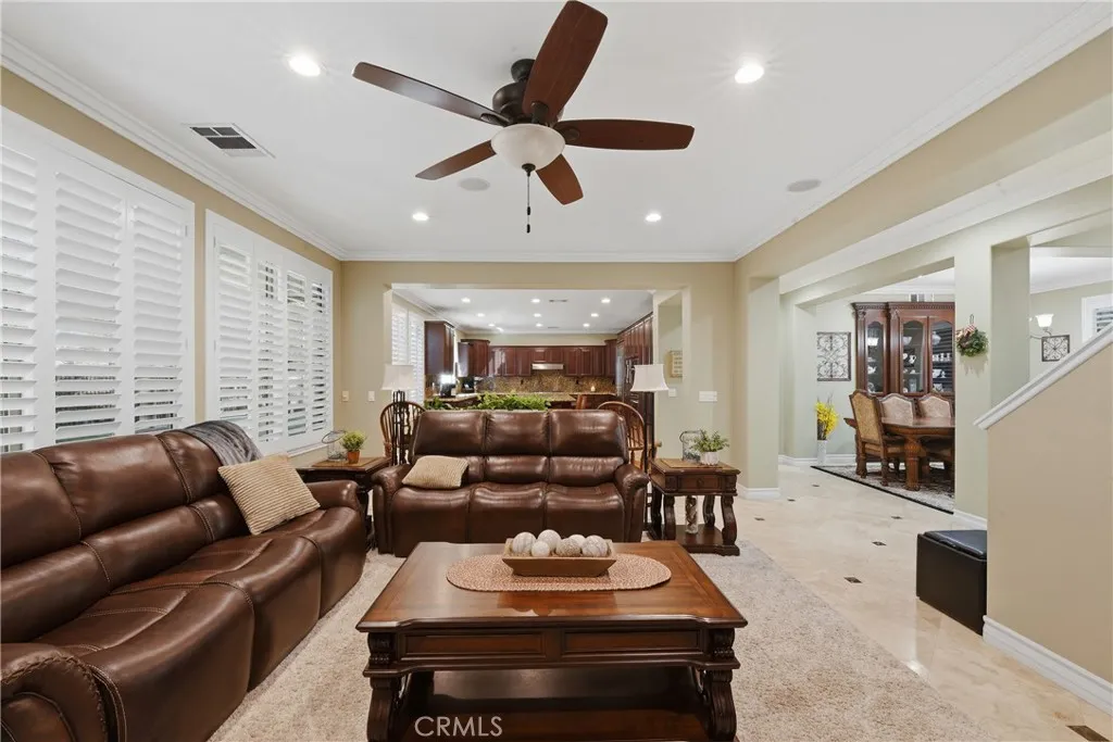 Rare and highly desirable *TWO BEDROOMS LOCATED DOWSTAIRS* set the tone for this exceptional home in the sought-after Heritage Lake community. Spanning 2,833 sq. ft., this beautifully upgraded residence offers 5 bedrooms and 3 bathrooms, perfectly suited for refined living, multi-generational needs, or elevated guest accommodations. From the moment you enter, youll notice custom flooring, elegant custom shutters, upgraded baseboards, crown molding, and thoughtfully updated bathrooms throughout. The luxurious primary suite is a private retreat, featuring updated countertops, a Jacuzzi soaking tub, a walk-in shower, and generous closet space. Designed to impress, the chef-inspired kitchen showcases a large center island with dual sinks, granite countertops, double ovens, microwave, five-burner gas cooktop, built-in refrigerator, dishwasher, and extensive cabinetryideal for both entertaining and everyday living. The backyard offers a serene, private setting with no rear neighbors, creating the perfect backdrop for outdoor dining, gatherings, or quiet evenings. Completing the home are a 3-car garage with epoxy flooring and overhead storage, along with a well-appointed laundry room with built-in cabinetry. Notable upgrades include new carpet, new gas range, microwave and dishwasher, new toilets and water valves, a new water heater with regulator, replaced HVAC and heating system, and a leaf-guard gutter system. Living in Heritage Lake means enjoying resort-style amenities including two pools, splash park, catch-and-release lake, scenic trails, sports fields, tennis courts, and m