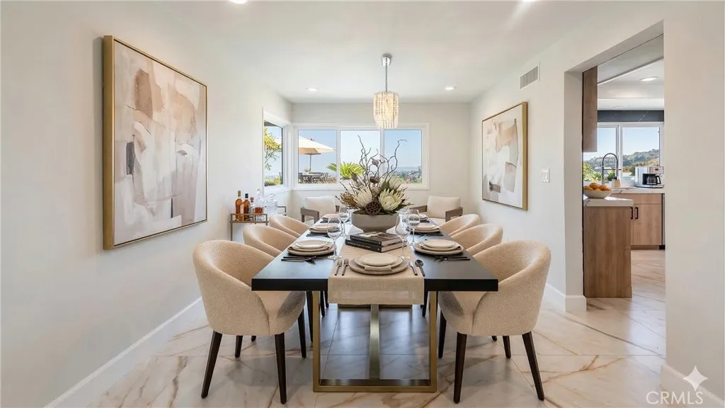 Perched above the sought-after Mulwood neighborhood of Calabasas, this contemporary home commands breathtaking panoramic views of the city and surrounding valleytruly a must-see. Thoughtfully designed with luxury and comfort in mind, every detail of this exceptional residence has been meticulously curated. The home features five spacious bedrooms and three beautifully remodeled bathrooms, enhanced by abundant natural light, recessed lighting, ample storage, and refined high-end finishes throughout. Wide-plank wood flooring paired with elegant marble surfaces flows seamlessly through the home, adding warmth and sophistication to its clean, modern aesthetic. At the heart of the home is a custom gourmet chefs kitchen, a true showpiece outfitted with premium Wolf appliances, a Sub-Zero refrigerator, waterfall-edge countertops with accent lighting, and dramatic accordion-style glass doors that create a seamless indoor-outdoor living experience. The primary suite offers an expansive private balcony with sweeping views, a generous walk-in closet, and a luxurious spa-inspired bathroom. Situated on a quiet street, the outdoor space is equally impressive, featuring a fully hardscaped yard with a sparkling pool and spa, ideal for entertaining or unwinding under the open sky. Additional highlights include owned solar panels that dramatically reduce utility costs, a brand-new HVAC system, no HOA fees, and placement within the highly sought-after Las Virgenes Unified School District, all just minutes from Calabasas premier shopping, dining, and entertainment. NO HOA | LAS VIRGENES SCHOOL