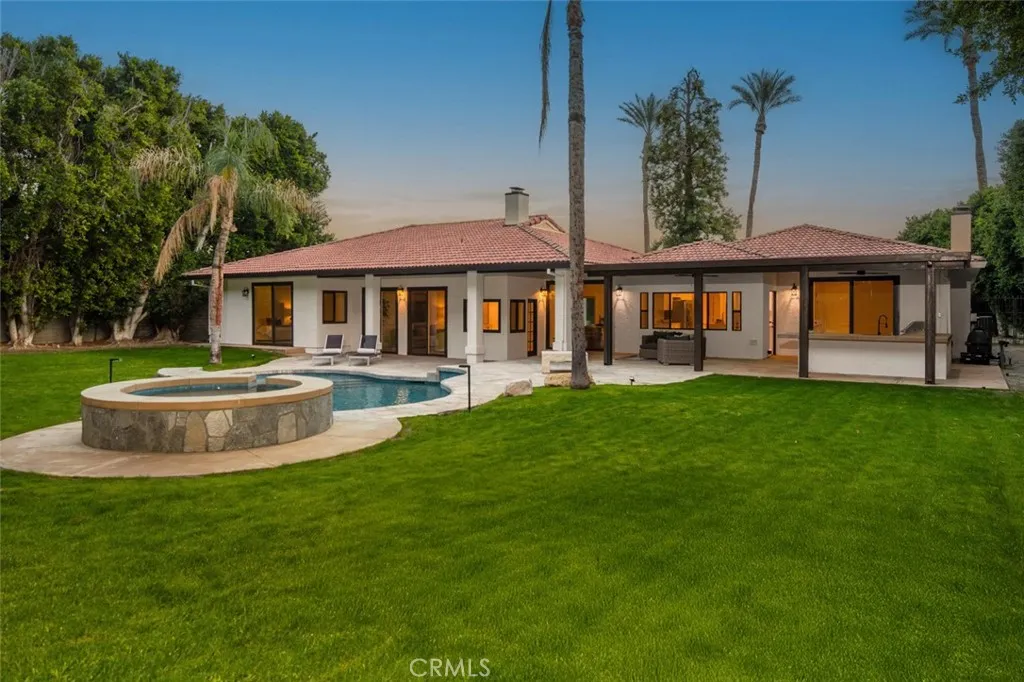 Rancho Mirage living, elevated. Set across a rare half-acre, this residence blends timeless materials, grand interior scale, and a resort-caliber backyard designed for gathering and retreat. With mature palms, long sightlines, and a setting that feels expansive from the moment you arrive, the property offers a sense of space and privacy thats increasingly hard to find in the desert. The home is designed to live outward, grounded in openness, proportion, and ease. Inside, the layout unfolds as a true retreat. Massive bedrooms are thoughtfully placed throughout the single-level floorplan, each one feeling more like a private suite than a standard room. Travertine floors run throughout, giving the interiors a natural warmth and timeless simplicity. An updated kitchen sits at the heart of the home, refined yet functional, designed to support both everyday living and effortless entertaining. The architecture remains clean and composed, with tall ceilings, soft transitions, and an openness that allows light to move through the home from morning into evening. The main living areas connect effortlessly outdoors, with wide glass doors opening onto an oversized backyard built for desert living. A resort-style pool anchors the setting, framed by stone hardscape and lush greenery, while the outdoor kitchen creates a natural place to gather, from afternoons in the sun to evenings under the patio lights. What makes the residence even more compelling is the level of care behind the scenes. Major upgrades have already been completed, including a new HVAC system, new water heater, updated p