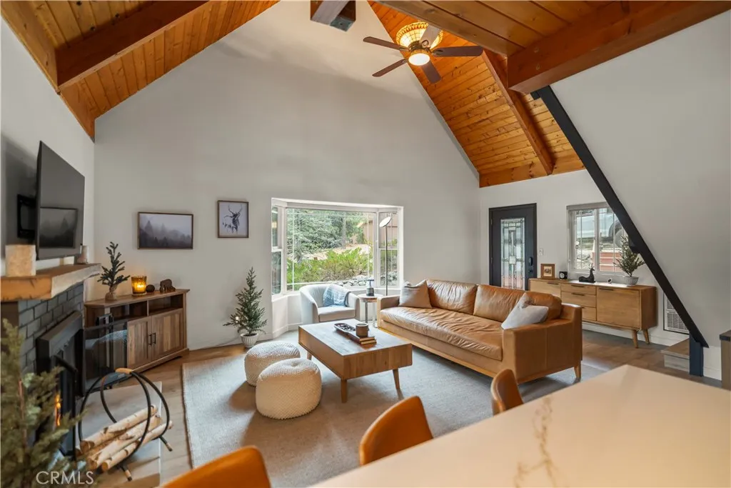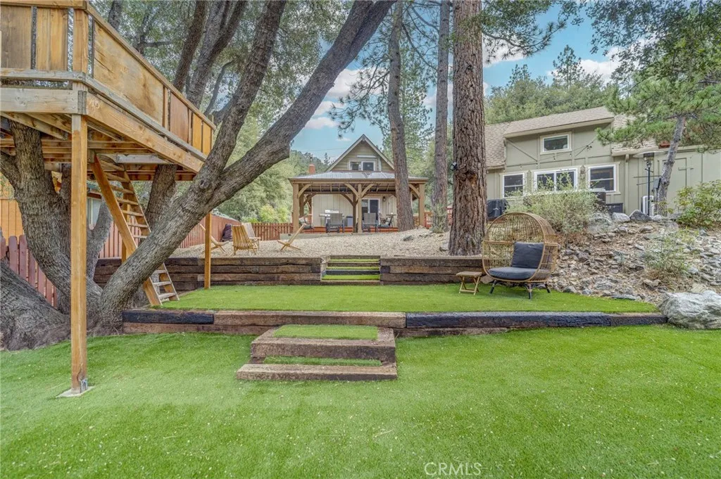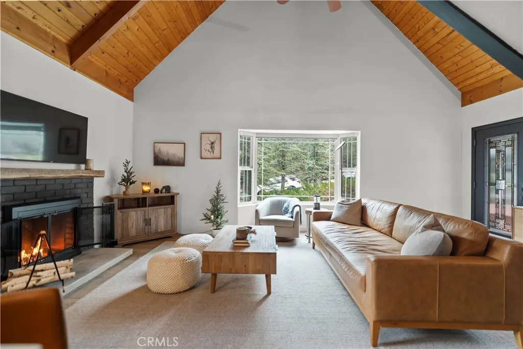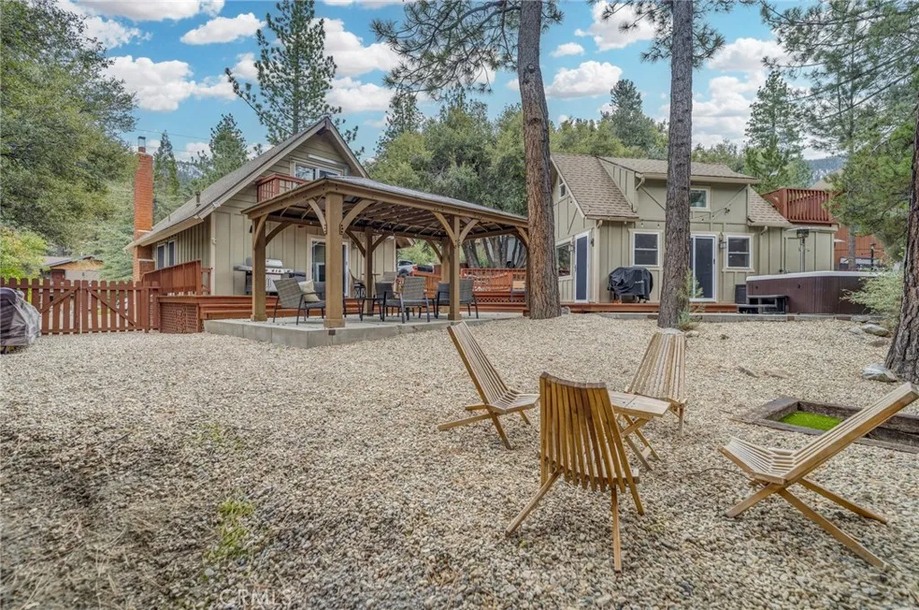 A true mountain compound with an oasis-style backyard, this exceptional Pine Mountain Club retreat offers high-end finishes, multiple living areas, and resort-style recreation. Thoughtfully designed for unforgettable mountain living, the property is set along the park-like setting of Teton Way. This one-of-a-kind offering features two separate living structures, expansive deck spaces, and nearly level grounds that invite you to relax, roam, and gather with ease. Two driveway-level gravel parking areas provide rare convenience in a mountain setting, making hosting family and friends effortless year-round. Inside the main cabin, soaring ceilings elevate the open-concept living, dining, and kitchen areas, creating a light-filled and welcoming atmosphere. Luxury updates are showcased throughout, including new LVP flooring, updated kitchen finishes with new countertops and backsplash, refreshed bathroom finishes, and fresh interior paint. A stunning stone hearth fireplace anchors the living space, while the open kitchen keeps the chef connected to the heart of the home. The main level also includes a bedroom, full bath, and laundry for everyday comfort and convenience. Upstairs, the private bedroom retreat opens to its own sitting deckperfect for morning coffee, quiet reading, or peaceful moments among the pines. Expansive decks connect the main cabin to the separate guest studio, which mirrors the homes elevated feel with soaring ceilings, new furnishings, a kitchenette, and a full bathideal for guests, extended stays, or flexible living. An additional bonus room nearby offers