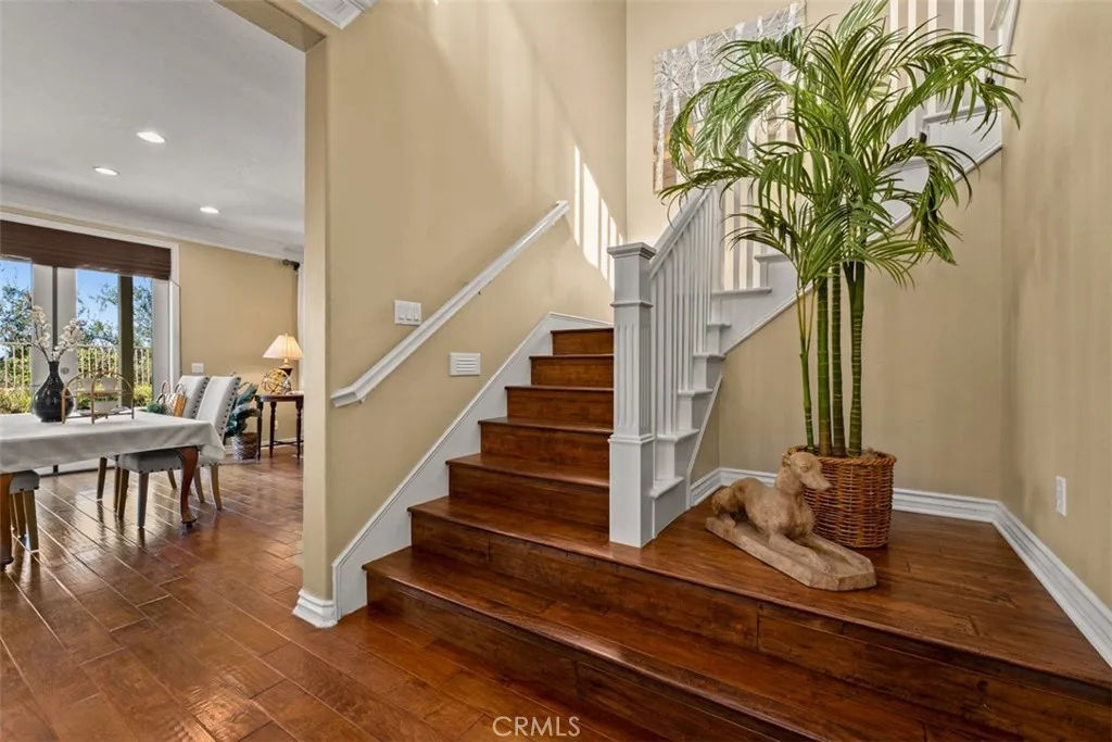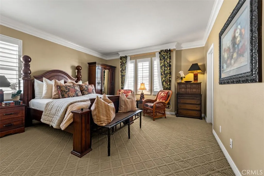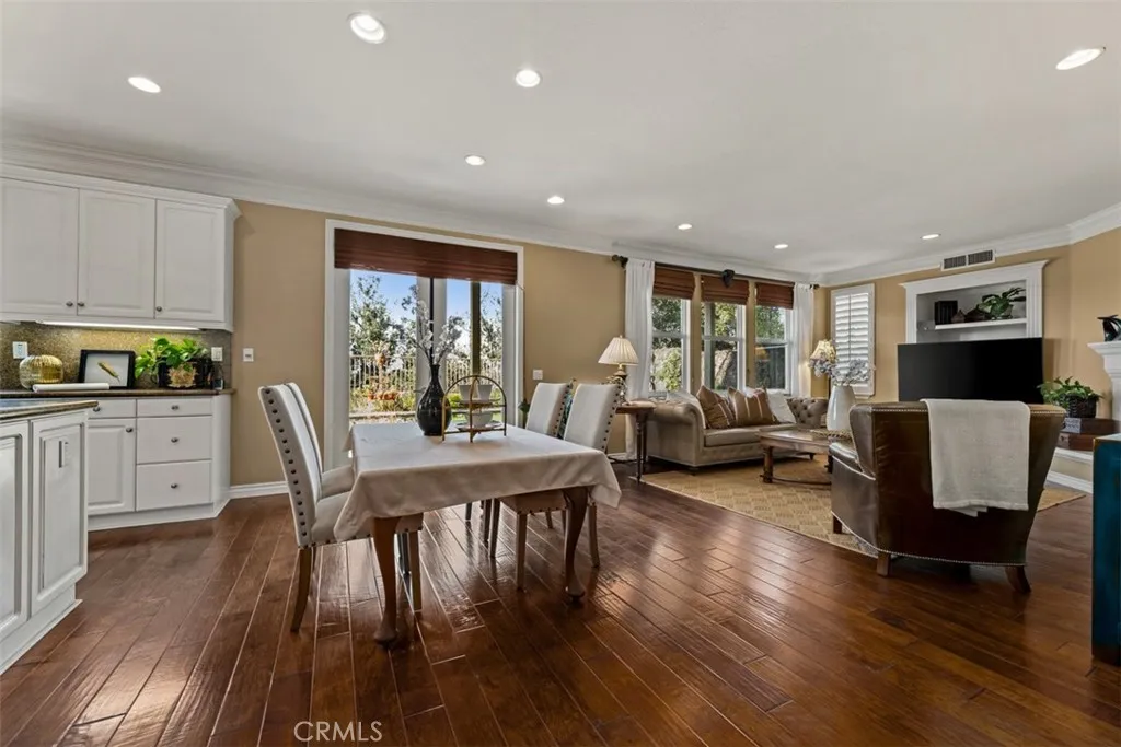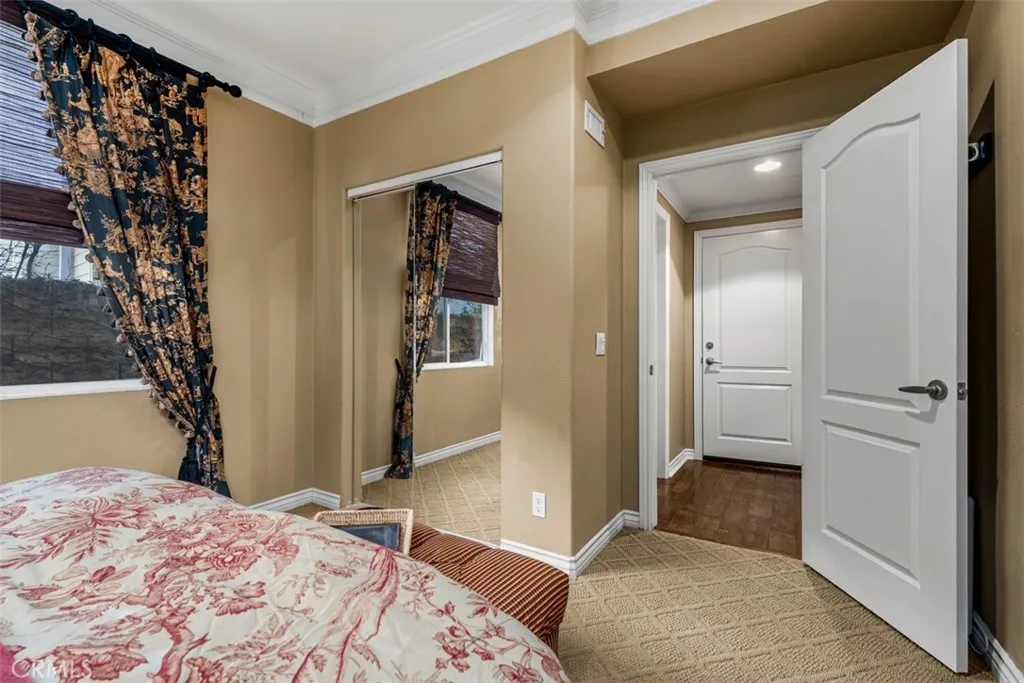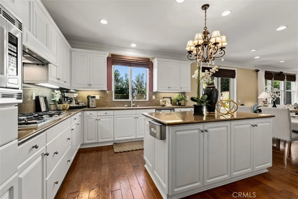 Located in the guard-gated community of Hawks Pointe, this executive-style home offers mountain views, city light views, and a flexible floor plan with a highly desirable main-floor bedroom and full bathroom. Designed with curb appeal in mind, the property features a stacked-stone and wrought-iron entry gate, flagstone walkways, and a private courtyard entry. Interior highlights include wood flooring, crown molding, custom window shutters, and an open-concept layout ideal for everyday living and entertaining. The formal dining room features designer lighting and custom wall finishes. The living room is currently configured as a home office, providing a dedicated work-from-home option. The kitchen is anchored by a large granite island with ample counter space and opens directly to the family room. French doors lead to a low-maintenance backyard with unobstructed mountain views, nearby walking trails, and city lights. Upstairs includes a spacious loft/den and generously sized secondary bedrooms with custom textured carpeting. The primary suite offers a spa-style bathroom with granite countertops, full tile shower surround, soaking tub with granite slab surround, and detailed backsplash finishes. Additional features include ceiling fans, custom blinds and drapery, curated light fixtures, and whole-house PEX plumbing, plantation shutters, LED lighting, and an abundance of storage. The main-level bedroom provides flexibility for guests or extended living needs. Hawks Pointe offers a guard-gated entrance, several mini parks, a tot lot, and scenic walking and hiking trails through