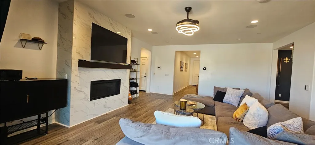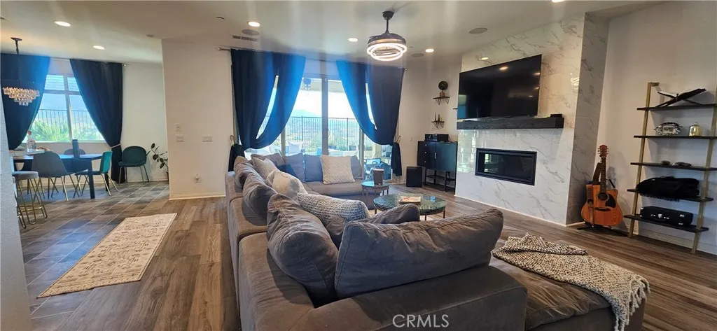 Introducing 1512 Yucca Ct in beautiful Calimesa a multi-generational Single Story home built in 2021 with 3 BD, 2.5 BA, and a flex room. Perched in an elevated setting, this home captures unobstructed panoramic mountain views, open skies and evening lights to enjoy everyday! Even better this home comes equipped with PAID SOLAR, providing long-term energy savings & protect you from rising electricity costs. Combined with EV charging capability in the garage, also offers the perfect blend of sustainability, convenience, and energy savings for homeowners. Step inside to an open-concept floor plan, with brand new Luxury Vinyl flooring, designed to feel both elegant and welcoming. Expansive windows and sliding glass doors frame the stunning views while filling the home with natural light. The inviting gas fireplace creates a warm focal point for gatherings or quiet evenings. Just off the main living area, a flexible entertainment space provides endless possibilitieswhether you envision a billiards lounge, wine room or a home office. The gourmet kitchen is the heart of the home, beautifully appointed with quartz countertops, an upgraded built-in range, custom cabinetry, designer lighting, and a spacious walk-in pantry. It flows effortlessly into the dining and great room areas, perfect setting for hosting family celebrations & dinner parties. The great room opens to a covered patio, seamlessly blending indoor and outdoor living. The expansive 11,761 sq ft lot is surrounded by flowering plants and fruit-bearing trees, offering plenty of space to relax, entertain, or envision fut