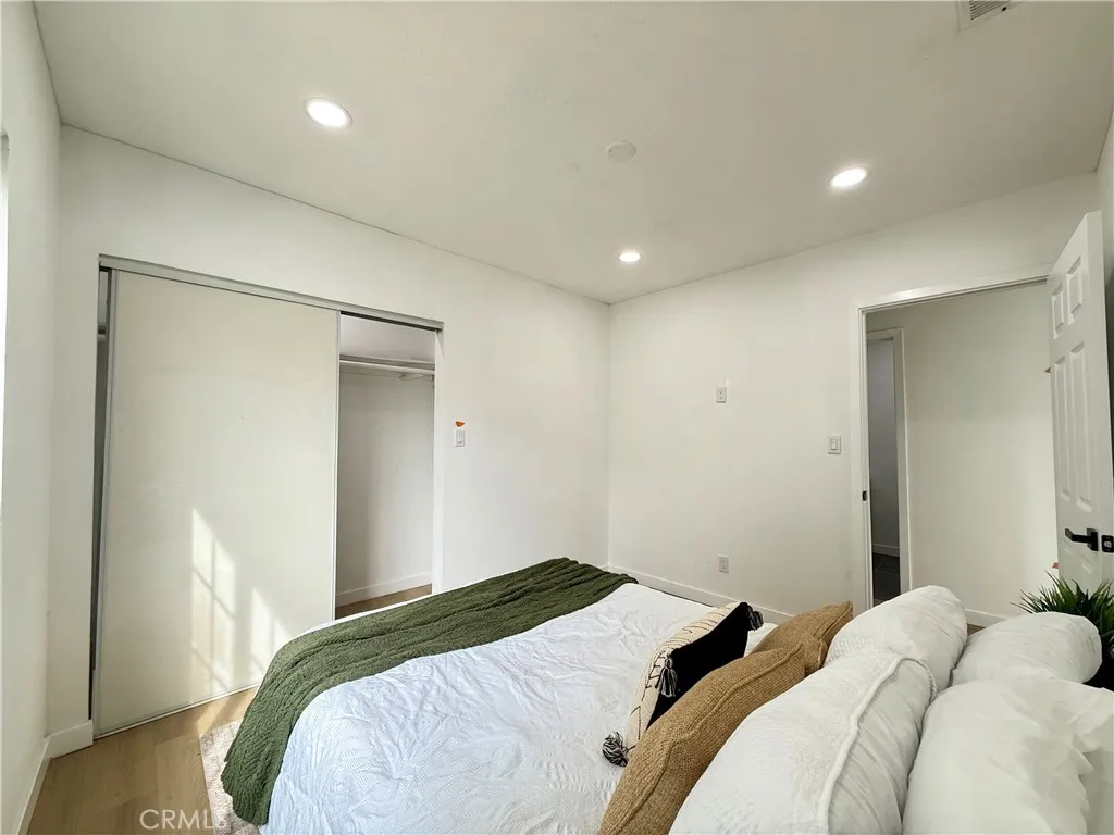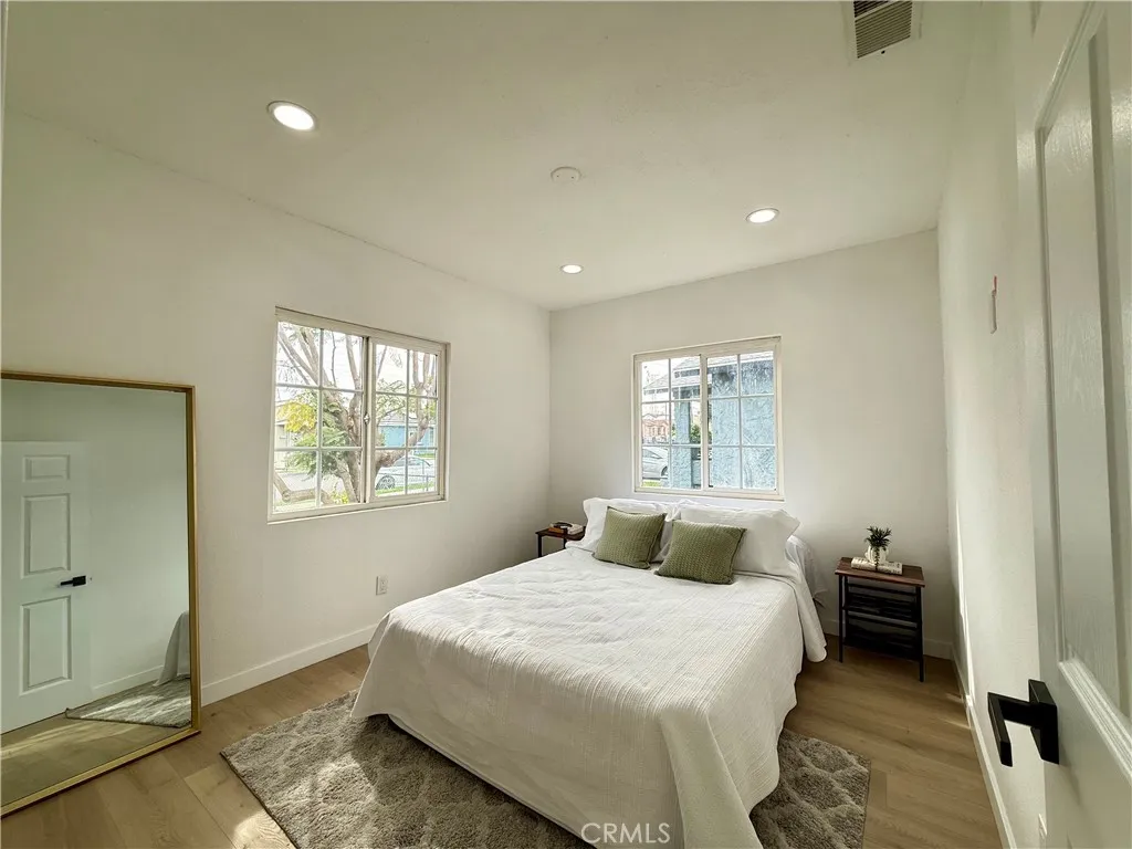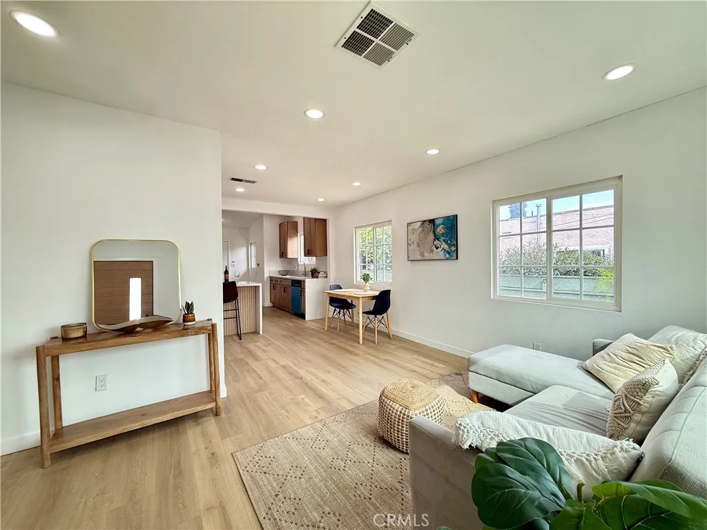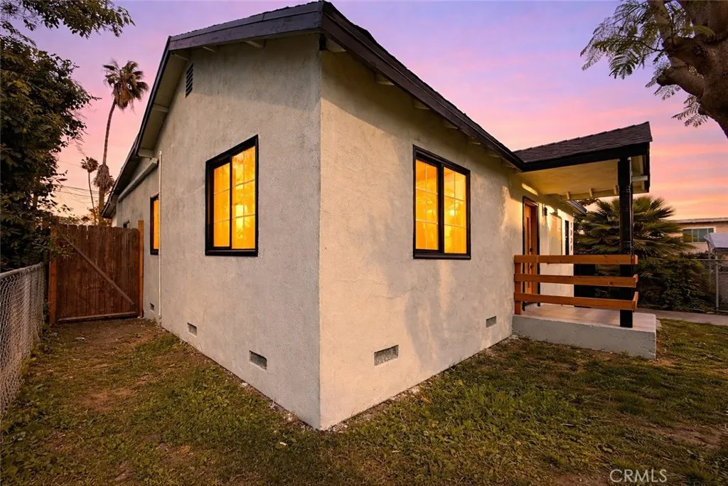 Welcome to this fully renovated 3-bedroom, 2-bathroom California bungalow offering a 6,505 sq ft lot size and a 1,032 sq ft of beautifully designed living space on a generous lot with a very large backyard. Thoughtfully reimagined from top to bottom, this home blends timeless character with modern luxury for a true turn-key opportunity. Step inside to an open-concept layout highlighted by a spacious living room with a large picture window, high ceilings in the kitchen and primary suite, both with outside access and seamless indoor-outdoor flow. The kitchen features quartz countertops with connecting waterfall edges, a stylish peninsula, soft-close oak cabinetry, modern finishes with black and gold accents, a double sink, and a brand-new stainless steel oven with hood and dishwasher included. The primary suite offers a walk-in shower, floating double vanity, and striking tilework, while the secondary bathroom features a shower with tub, matching tile design, and a floating double vanityboth bathrooms finished with elegant gold accents throughout. Major upgrades include new roof, windows, doors, flooring, lighting, cabinets, countertops, bathrooms, kitchen, fencing, and central A/C and heat, providing peace of mind and long-term value. The home also offers private parking with a carport and a spacious driveway accommodating multiple vehicles. The expansive backyard is ideal for entertaining, future expansion, or additional living space, featuring clean landscaping, a beautiful wood privacy fence, and a large covered overhang area perfect for outdoor gatherings. Zoned R-2, the
