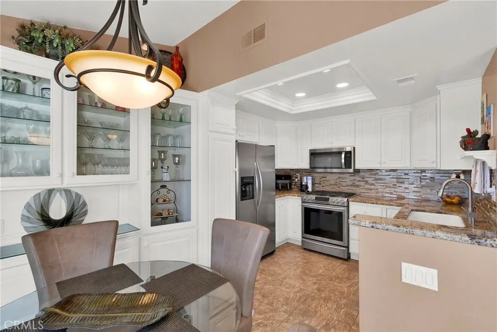 It's Like having YOUR OWN SWIMMING POOL & SPA steps outside your door from your Private Gated Patio (ONLY available to Lakeside I Residents) is one of the great features offered with this Single Level, Beautifully UPGRADED 'SANTA ROSA' Model. Seller was in Construction for Years, doing many remodels in Sun Lakes, and has made this IMPECCABLE HOME Unique and Gorgeous. HOA Dues include: Internet, Premium TV, Insurance, Exterior Paint & Maintenance + Roof, Gardening & Pest Control) - Upgrades and Features include: Custom Paint & Ceilings Redone (NO Popcorn) with Custom Lights & Fans throughout; Kitchen has had all Cabinetry Replaced which is White with Glass/Lighted Insets, and a large built-in Breakfront for Extra Storage and Display, Stainless Steel Appliances, Exotic Granite Counters & sliders to Private Back Patio; Updated Bathrooms; Walls Reconfigured for More Wall Space and Extra Gated Area on Patio (2 Fenced Sections in Yard ). ALL FURNITURE can be included (except Primary BR), and it's very Attractive Updated Furniture ....... Sun Lakes Country Club goes beyond just a place to live - It's a vibrant community designed to keep you Active & Engaged, offering: TWO 18-HOLE GOLF COURSES with 2 Pro Shops, THREE Clubhouses, TWO Restaurants, Bar & Lounge, Tennis, PICKLEBALL COURTS, Pools (Including Large Indoor Pool), Jacuzzi Spas, THREE Fitness Centers & Fabulous Planned Activities Offered on a Daily Basis. There are 80+ Social CLUBS, including: Dancing, RV Club, Yoga, Table Tennis, Cards, Bocce Ball, Bowling, Car Club, Drama/Theatre Club, Sewing, Tennis, Knitting, Bingo, Trav