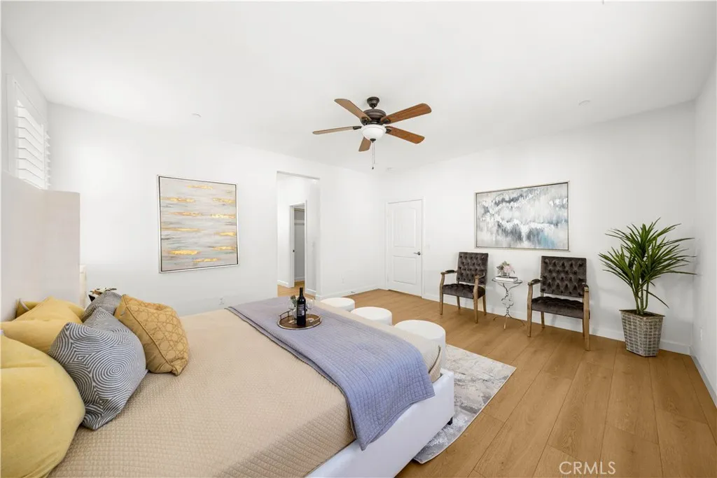 Welcome to 6956 La Rochelle Way in Chino, a rare 2018-built next-generation home that offers an ideal balance of space, functionality, and excellent income potential. This well-maintained residence features 5 bedrooms and 3.5 bathrooms across 3,156 square feet of bright living space on a 4,200-square-foot lot, with a desirable south-facing orientation that provides abundant natural light throughout the home. The interior was just fully upgraded last week with premium 15mm thick laminate flooring throughout, offering superior durability, sound reduction, and a solid underfoot feel, complemented by new modern baseboards for a clean, cohesive finish. A brand-new garage door further enhances both functionality and curb appeal. The home presents in move-in-ready condition. One of the most valuable features of this home is the fully independent attached suite with a private exterior entrance, also separated from the main house by a lockable interior door for complete privacy. The suite includes its own living room, kitchenette, dedicated laundry area, refrigerator, microwave, and a spacious bedroom with a walk-in closet and en-suite bathroom, making it ideal for multi-generational living or rental income of approximately $1,750$2,000 per month. The backyard is enhanced with mature fruit trees including fig, lemon, orange, tangerine, and guava along with different flowers. Offered at $1,086,000 with approximately 1.3% property tax and a low $134 monthly HOA, this home offers a compelling ownership opportunity, where rental income can significantly reduce the monthly carrying cost
