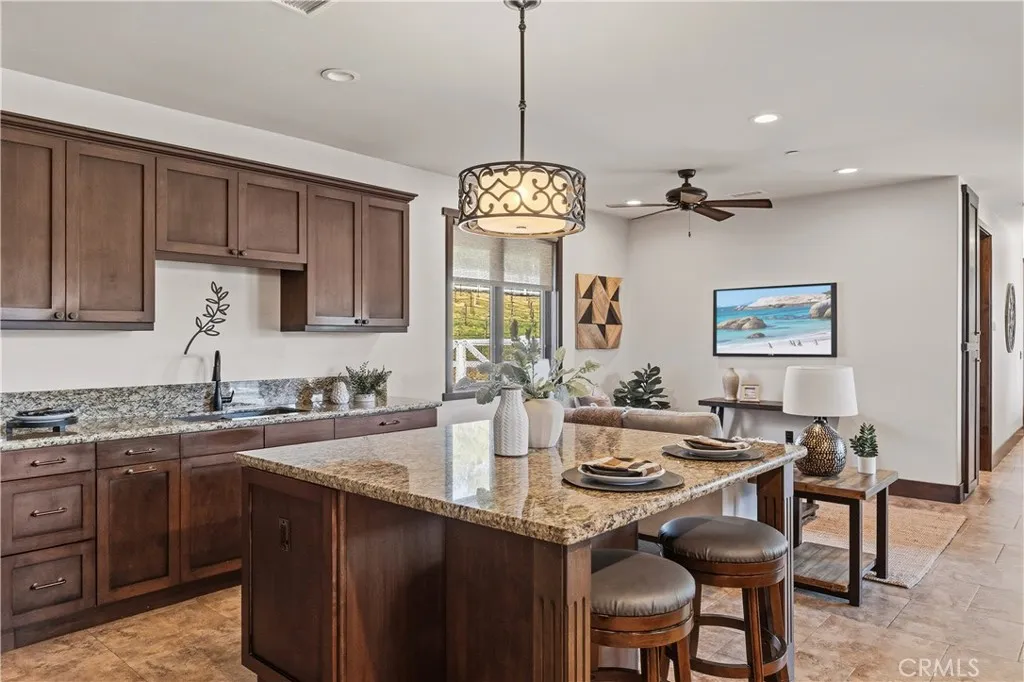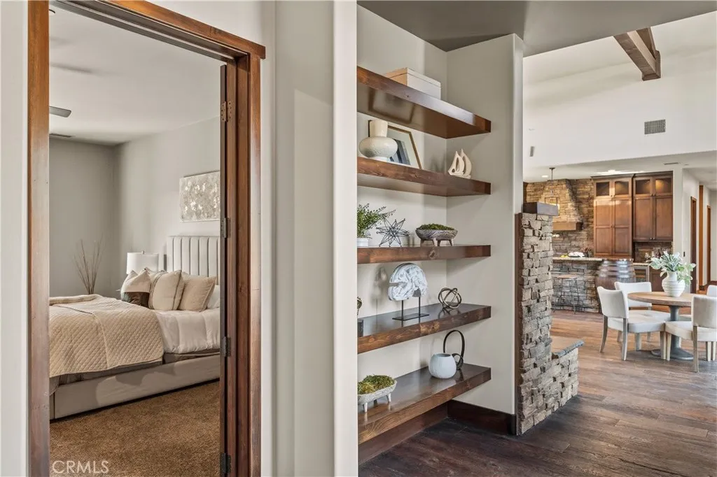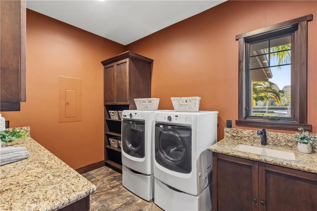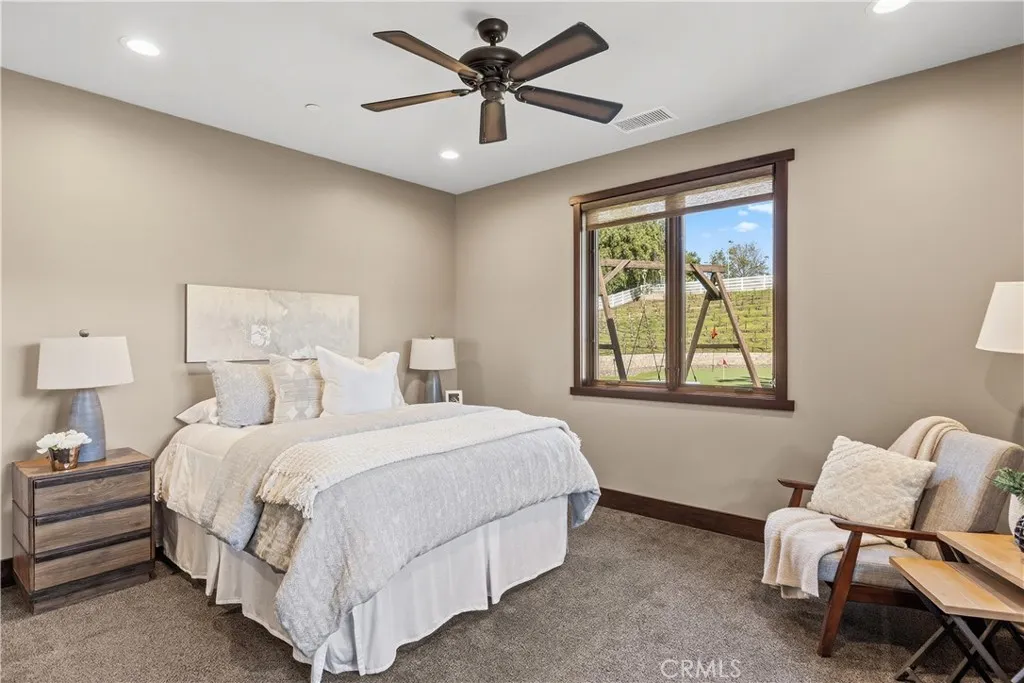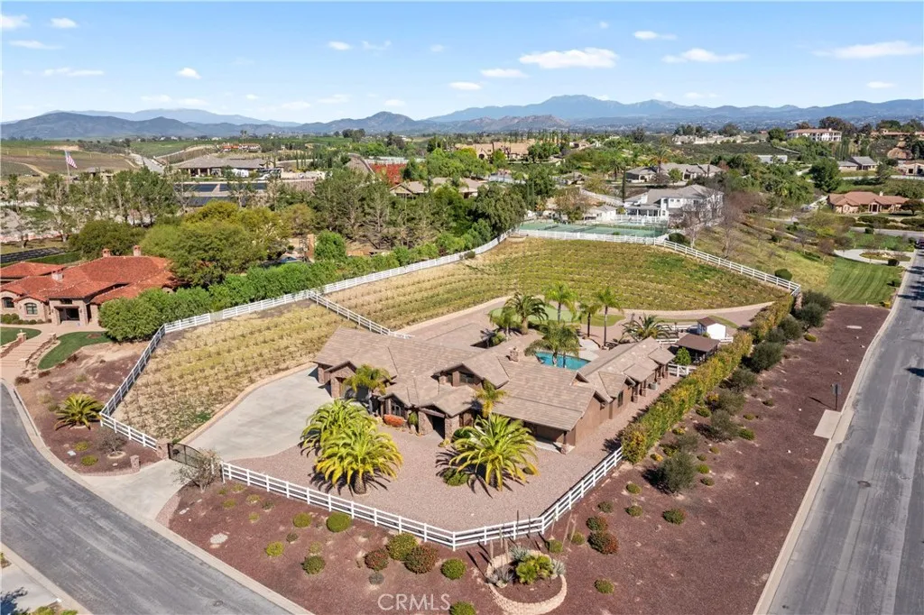 Premier Wine Country Estate with Vineyard & Multi-Generational Design. This exceptional Temecula estate offers 6 bedrooms, 5 bathrooms, and approximately 5,063 square feet of thoughtfully designed living space, perfectly suited for multi-generational living or flexible use. The home is intelligently divided into two distinct wings: the main wing features four oversized bedrooms along with a theater room or office, while the secondary wing functions as a private living suite complete with two bedrooms, a full kitchen, dining and living areas, a shared bath, and direct garage accessideal for extended family, guests, or potential rental use. The gourmet kitchen showcases a Wolf range, Sub-Zero refrigerator, wine fridge, and rich custom wood cabinetry, complemented by durable commercial-grade wood plank flooring and soaring two-story ceilings that flood the home with natural light. Nearly every room overlooks the heart of the propertyan entertainers dream featuring a saltwater PebbleTec pool, putting green, gas fire pit, full outdoor kitchen, and approximately three-quarters of an acre of income-producing vineyard. Additional highlights include a luxury lighted chicken coop, raised garden beds, powered storage shed, oversized three-car garage with extensive storage, and a fully finished attic large enough for a future game or bonus room. Fully gated with RV parking and hookups, low-maintenance landscaping, and the rare advantage of city water, natural gas, and sewerwith no HOAthis one-of-a-kind property is just minutes from Temecula Wine Country, shopping, and freeway access. A