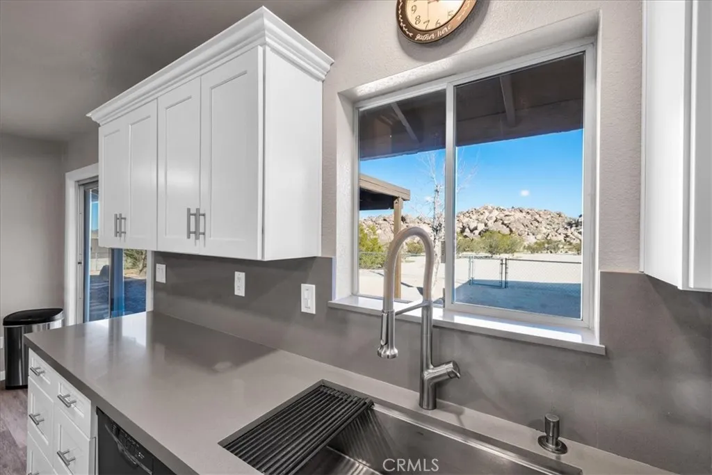 Set in Joshua Trees Panorama Heights, this 3-bedroom, 2-bath home sits on over an acre of dramatic high-desert terrain, surrounded by striking natural boulder formations that define the property and give it a true sense of place. The landscape here isnt a backdropits the experience. Massive rock outcroppings frame outdoor living areas, create natural privacy, and offer endless spots to gather, reflect, or simply take in the quiet. Inside, the home is 1,107 square feet with a comfortable, functional layout that opens easily to the outdoors. The living, dining, and kitchen spaces connect seamlessly, with clean finishes and an easy flow that works well for everyday living or hosting friends. Large windows bring the desert light inside and keep the boulder views front and center. Bedrooms are thoughtfully placed, offering flexibility for guests, creative space, or a home office. Outside is where this property truly shines. Multiple areas invite you to sit among the rocks, whether its around the fire pit, in the hot tub, on the covered patio, or tucked into a natural stone alcove. The scale of the lot allows room to wander, explore, and shape the land over timewithout losing the raw beauty that makes Panorama Heights so special. RV drive in gates, RV hookups and dump, covered boat parking, and a workshop that can be easily converted to a casita. Located just minutes from Joshua Tree National Park, local restaurants, galleries, and music events, this home offers a balance of privacy and access. A rare boulder property with presence, personality, and a setting that simply cant be