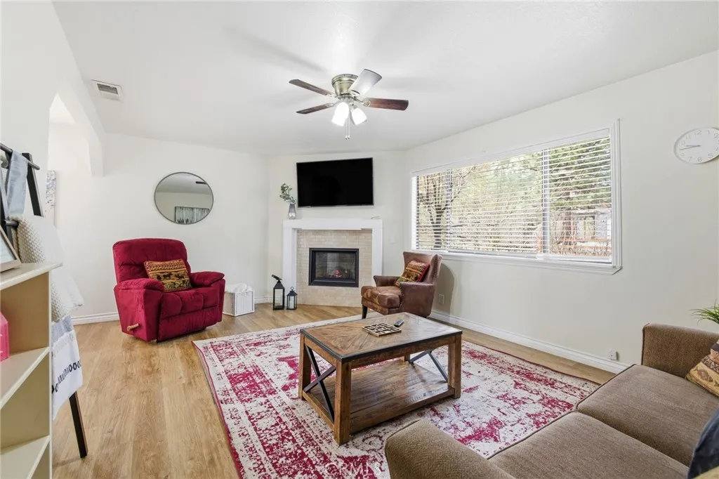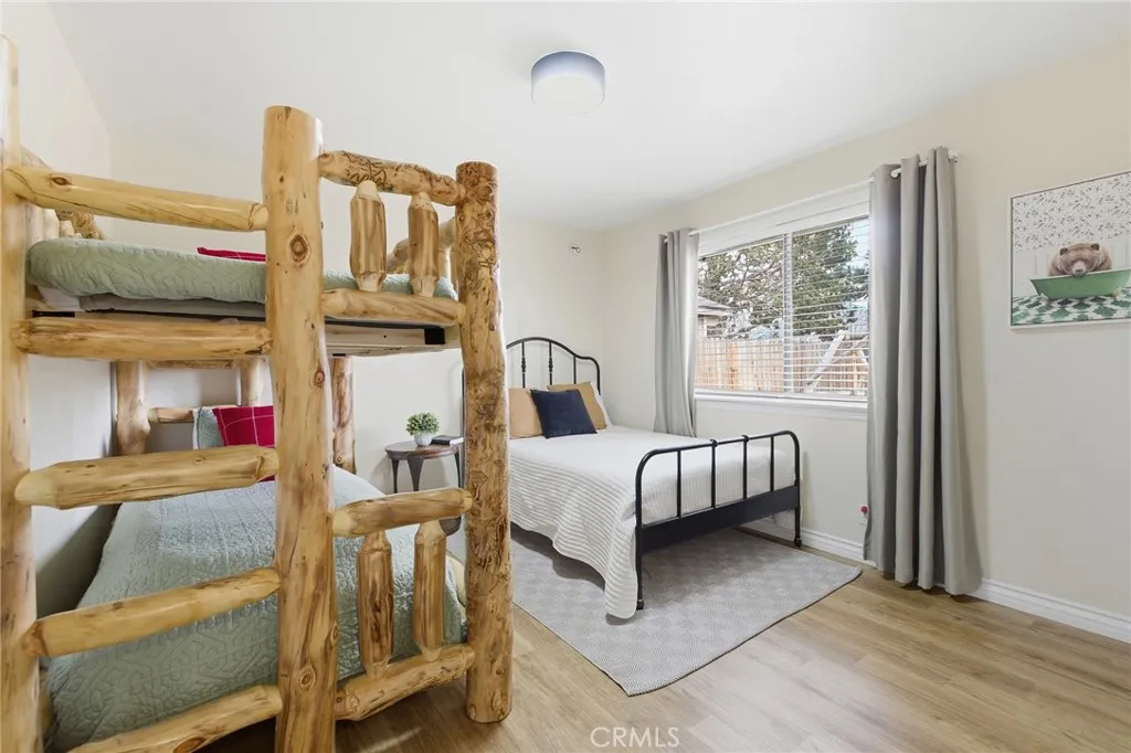 Welcome to this charming 2-bedroom, 1-bath Sierra-style mountain cabin in the heart of Big Bear City, offering approximately 1,000 sq ft of living space on a 5,250 sq ft level lot. Step inside to a home that feels light and inviting, featuring newer flooring throughout, a newer gas fireplace for cozy mountain evenings, and a newer roof. Washer and dryer hookups are conveniently located inside the home, and the two generously sized bedrooms provide comfortable accommodations for family, guests, or vacation renters. Outside, the property truly shines. The fully fenced backyard, surrounded by beautiful, mature pine trees, offers a rare sense of privacy and tranquilityperfect for relaxing or entertaining. A large storage shed provides ample room for mountain toys, bikes, and gear, while the paved driveway offers plenty of parking. In season, the front yard features an apple tree and grapevines, adding charm and a true mountain-garden feel. Currently used as a vacation home and Airbnb, this property presents an excellent opportunity for investors, second-home buyers, or full-time residents seeking both lifestyle and income potential. Its layout, location, and outdoor setting are highly appealing to guests looking for an authentic Big Bear experience. Conveniently located near Big Bear Lake, ski resorts, hiking and biking trails, boating, fishing, off-roading, dining, and local shopping, this home offers easy access to four-season recreation while still feeling peacefully tucked away in a quiet, natural setting. A rare opportunity to own a property that blends privacy, comfort, c