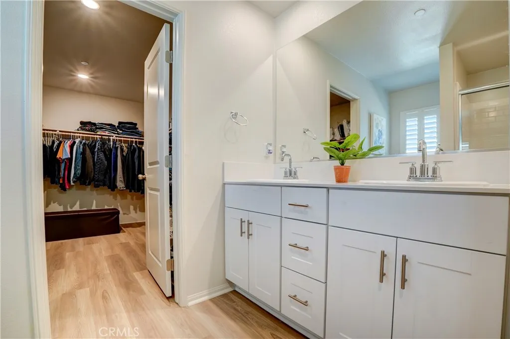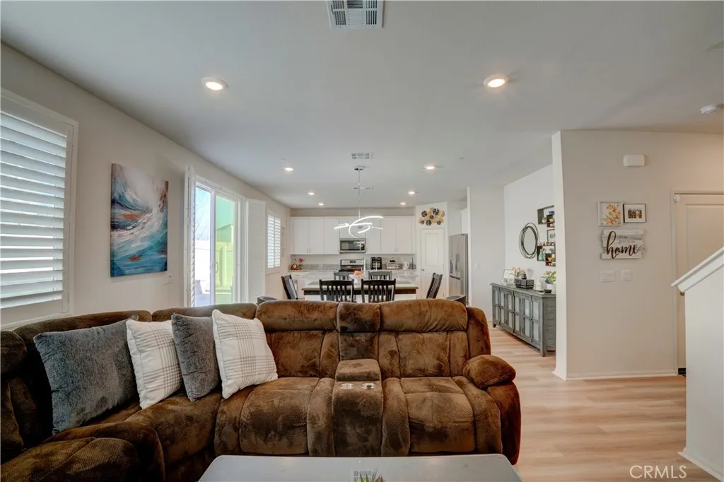 Buy now with confidence, welcome to 24856 Tiger Ave, this brand-new, move-in-ready Meritage Home offering modern comfort and a thoughtfully designed open-concept layout. Built in 2021 and lightly lived in for approximately five months, this home feels nearly new. This stunning residence, approximately 1,925 sq. ft., features 4 bedrooms, 3 bathrooms, a 2-car garage, and a convenient indoor laundry room. A main-floor bedroom and full bathroom provide the perfect space for guests, extended family, or a private home office. The spacious floor plan seamlessly connects the family room, dining area, and kitchenideal for both everyday living and entertaining. The kitchen showcases a large granite island with bar seating, white cabinetry with modern hardware, stainless steel appliances, and a generous walk-in pantry. The spacious primary suite offers dual sinks, a large walk-in closet, and plenty of room to unwind. Additional highlights include approximately $20,000 in upgraded flooring installed in January 2025, upgraded window shutters, and a fully landscaped, low-maintenance backyard designed for easy enjoyment. Meritage Homes is nationally recognized for building energy-efficient homes, featuring spray foam insulation. This home might still includes a remaining structural warranty and leased solar, helping reduce utility costs year-round. Ideally situated within walking distance to a park, less than a mile from local schools, & close to shopping centers and restaurants. This home offers exceptional commuter convenience with quick & easy access to major freeways. Just minutes fro