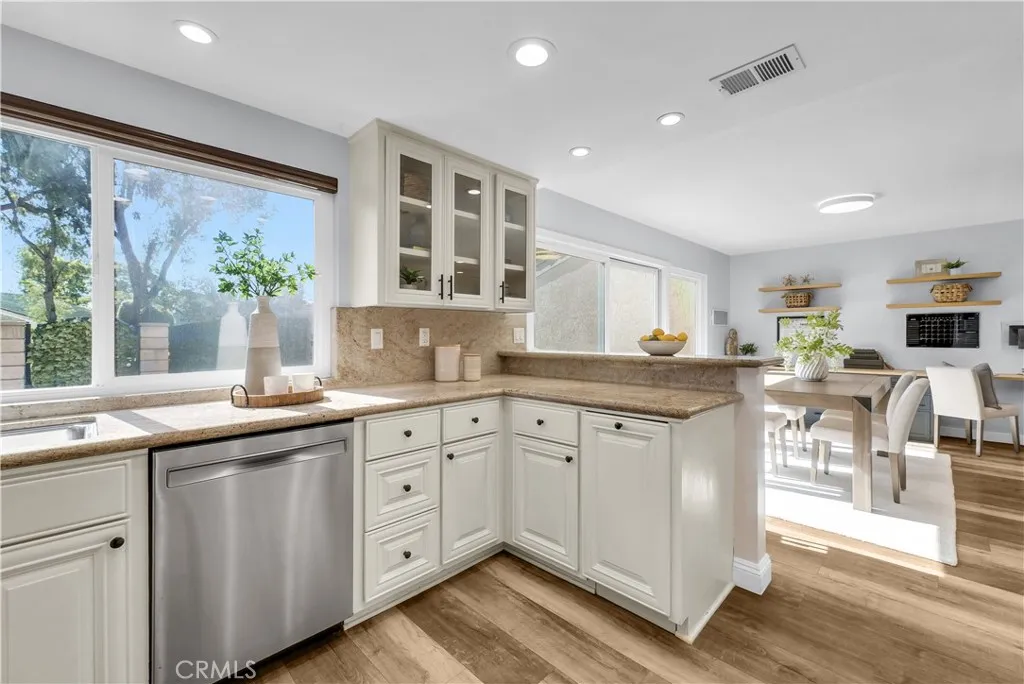 Located in one of the best locations within Westminster Village, this beautifully upgraded and impeccably maintained home backs to a large greenbelt, giving you the feel of your own private backyard. You are just a short walk to the community amenities, close enough for convenience while still far enough away to enjoy peace and quiet. Inside, you will find dual-pane windows, plantation shutters, and luxury vinyl plank flooring. The main level offers a built-in office area, complete with a custom solid maple desktop and custom drawers, perfect for working from home or staying organized. The desirable downstairs bedroom includes a dual-pane slider to the side patio and a bath with a walk-in shower, making it ideal for guests or multi-generational living. The kitchen is well-appointed with a reverse osmosis system, a new stainless steel oven with air fry and convection settings, a new dishwasher, and plenty of counterspace. Upstairs, the primary suite is a true retreat, featuring a spacious, light-filled setting with soaring vaulted ceilings, recessed lighting, a cozy fireplace with a seating area, a generous walk-in closet complete with a custom built-in closet system, and a private ensuite bath. The second upstairs bedroom connects to an expansive finished bonus room perfect for a playroom, extra office, yoga or exercise room, or additional storage. Enjoy an enclosed private patio ideal for BBQs and entertaining, plus an oversized attached two-car garage with an epoxy floor, finished drywall, laundry hookups, ample storage, and a Stage 2 EV charger. The garage also includes
