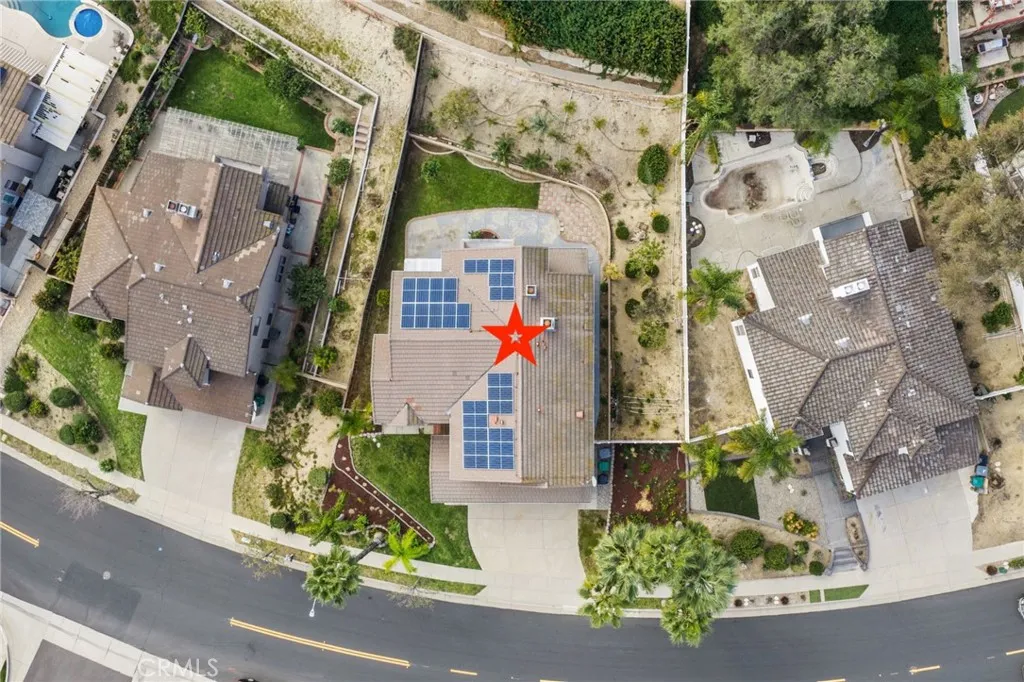 Ideally located on one of the most desirable streets in Sierra Del Oro, this residence offers the rare combination of Orange County proximity, privacy, and mountain views. Nestled in the foothills of the Santa Ana Mountains, the home enjoys a premium setting with no homes across the street or behind, creating a peaceful and open backdrop not easy to find so close to Orange County. The home is truly move-in ready, featuring fresh interior paint, new plush carpeting upstairs, and beautifully re-stained wood floors throughout the main level. An almost new, fully paid-off 36-panel solar system provides substantial long-term energy savings. From the moment you enter through the double doors, youre greeted by a raised foyer and soaring ceilings that set an elegant tone. The formal living and dining rooms showcase dramatic two-story ceilings and expansive floor-to-ceiling windows that flood the space with natural light and bring the outdoors in. The oversized kitchen is designed for both everyday living and entertaining, offering a large center island, generous breakfast bar seating, a built-in desk, and a spacious walk-in pantry. It opens seamlessly to the large family room, which features stacked windows, a gas fireplace, a built-in entertainment center, and sliding doors that lead directly to the backyardperfect for indoor-outdoor gatherings. A downstairs bedroom with a full bathroom provides flexibility for guests, multi-generational living, or a home office. Upstairs, the primary suite is a true retreat with voluminous ceilings, a dual-sided fireplace, stacked windows, and a