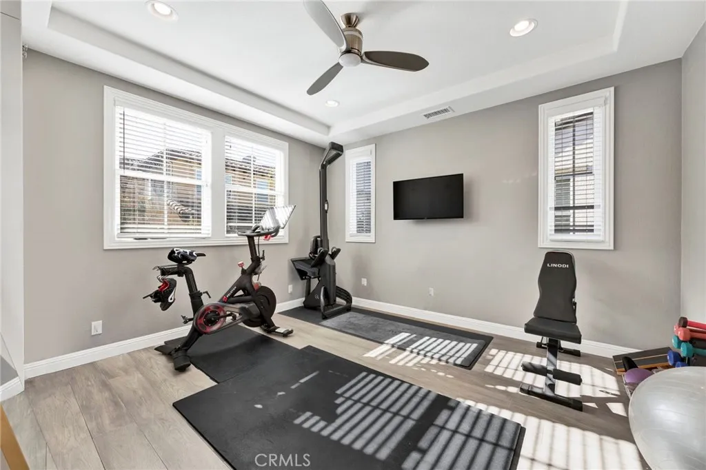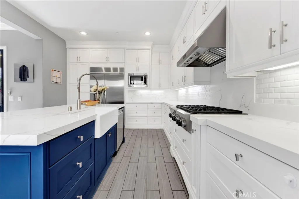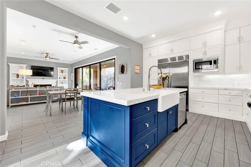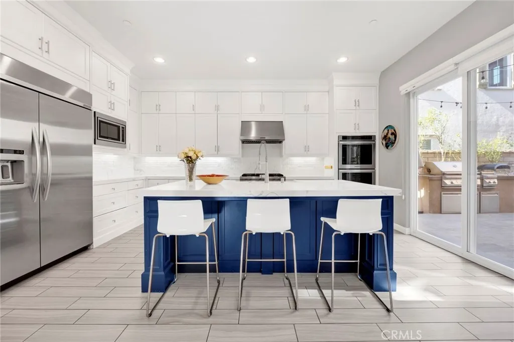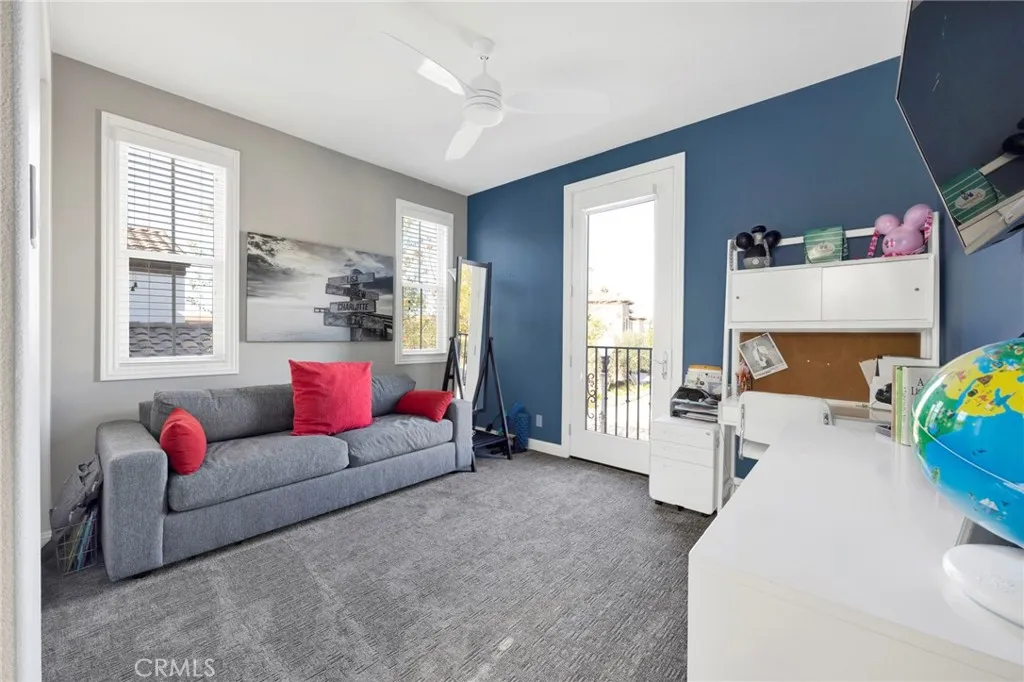 Nestled within the highly sought-after Baker Ranch master-planned community in Lake Forest, this beautifully upgraded 5-bedroom, 4.5-bath single-family residence offers 3,092 square feet of thoughtfully designed living space on a 4,500-square-foot lot. Built in 2014, the home blends modern comfort with exceptional indoor-outdoor living. The open-concept main level is anchored by a light-filled living and dining area, highlighted by two expansive retractable doors that seamlessly connect the interior to the outdoor spaceperfect for entertaining and everyday living. The upgraded kitchen features new quartz countertops, farmhouse sink, new dishwasher, updated cabinet hardware, and pantry pull-outs, combining style with functionality. Downstairs includes a private bedroom with ensuite full bathroom, ideal for guests or multigenerational living, along with a versatile mudroom equipped with washer/dryer, refrigerator space, and abundant storage with shelving. Beautiful grey tile flooring flows throughout the main level, while new carpet enhances the upstairs loft and staircase. Upstairs, a massive loft provides flexible space for a media room, playroom, home office, or kids' work station. The spacious primary suite is complemented by an extended bonus roomperfect for an office, gym, or retreat and includes additional storage cabinets. Ceiling fans are installed in every bedroom, above the dining area, and in the primary bathroom. Additional features include an upstairs laundry room, new countertops in both downstairs bathrooms and the upstairs Jack-and-Jill bath, as well as SafeR