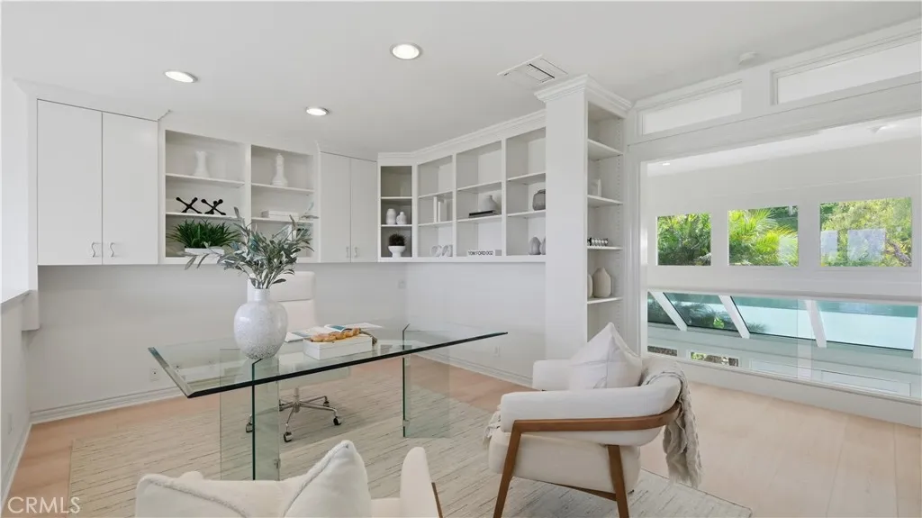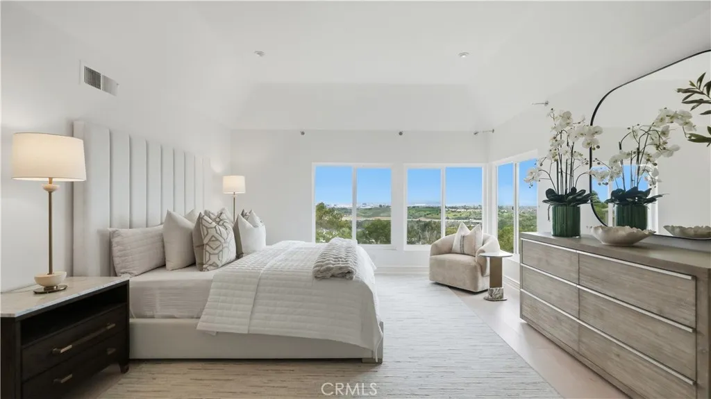Located within the gated enclave of Harbor Ridge, this 3 bedroom + office, 3 bath residence enjoys elevated city and ocean views, and a thoughtfully designed floor plan that balances privacy and functionality throughout the home. A gated entry leads to a landscaped courtyard, creating a quiet and welcoming arrival. Inside, the interiors are light filled and refreshed, featuring skylights, recessed lighting, and clean, neutral finishes. The main living areas are highlighted by high ceilings and seamless access to multiple outdoor patios, enhancing everyday living and entertaining. The kitchen is designed for both everyday living and entertaining, featuring a center island, black onyx granite countertops, high end appliances, generous storage, and a casual dining area overlooking the garden. A full bathroom is conveniently located on the main level, providing ease of access for guests and daily use. The upstairs office offers built in workspace and a quiet setting, making it well suited for working from home. The primary suite features two walk in closets, including a spacious cedar lined dressing closet, and a well appointed bathroom with dual vanities, a soaking tub, and a separate shower. The suite also opens to a private balcony, offering open views and a peaceful extension of the living space. Residents of Harbor Ridge Estates enjoy access to community pools, spas, tennis courts, and walking trails, all conveniently located near Fashion Island, Pelican Hill, Newport Beachs coastline, and award-winning schools.